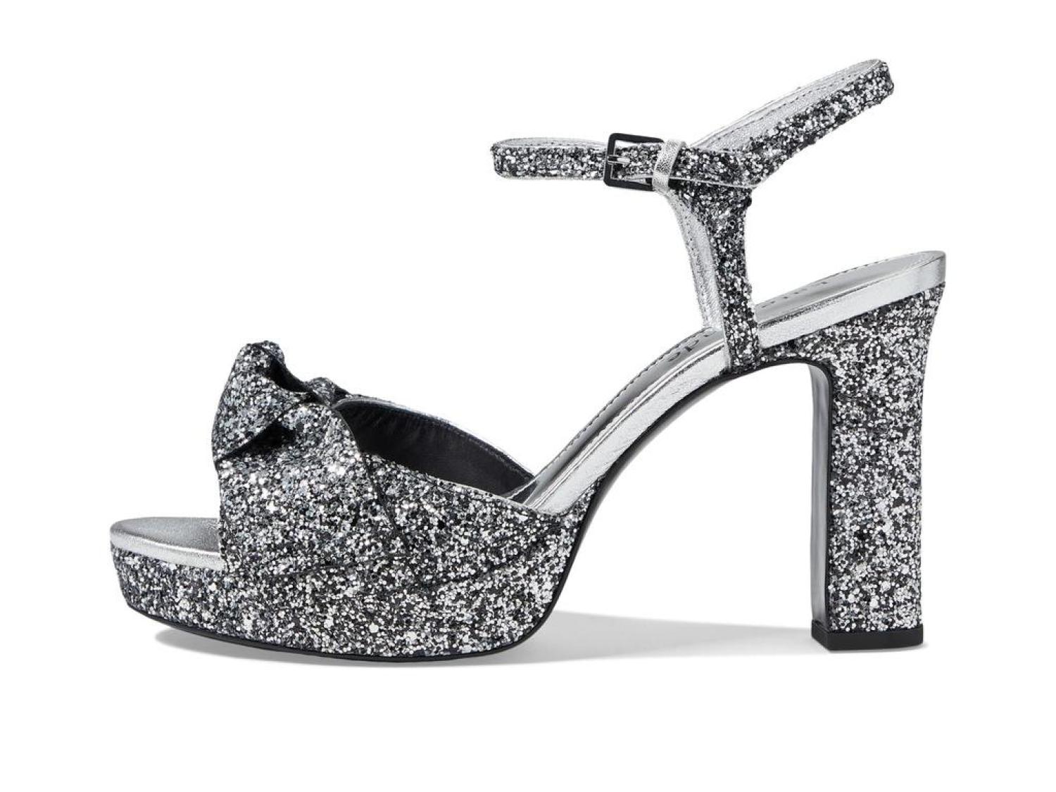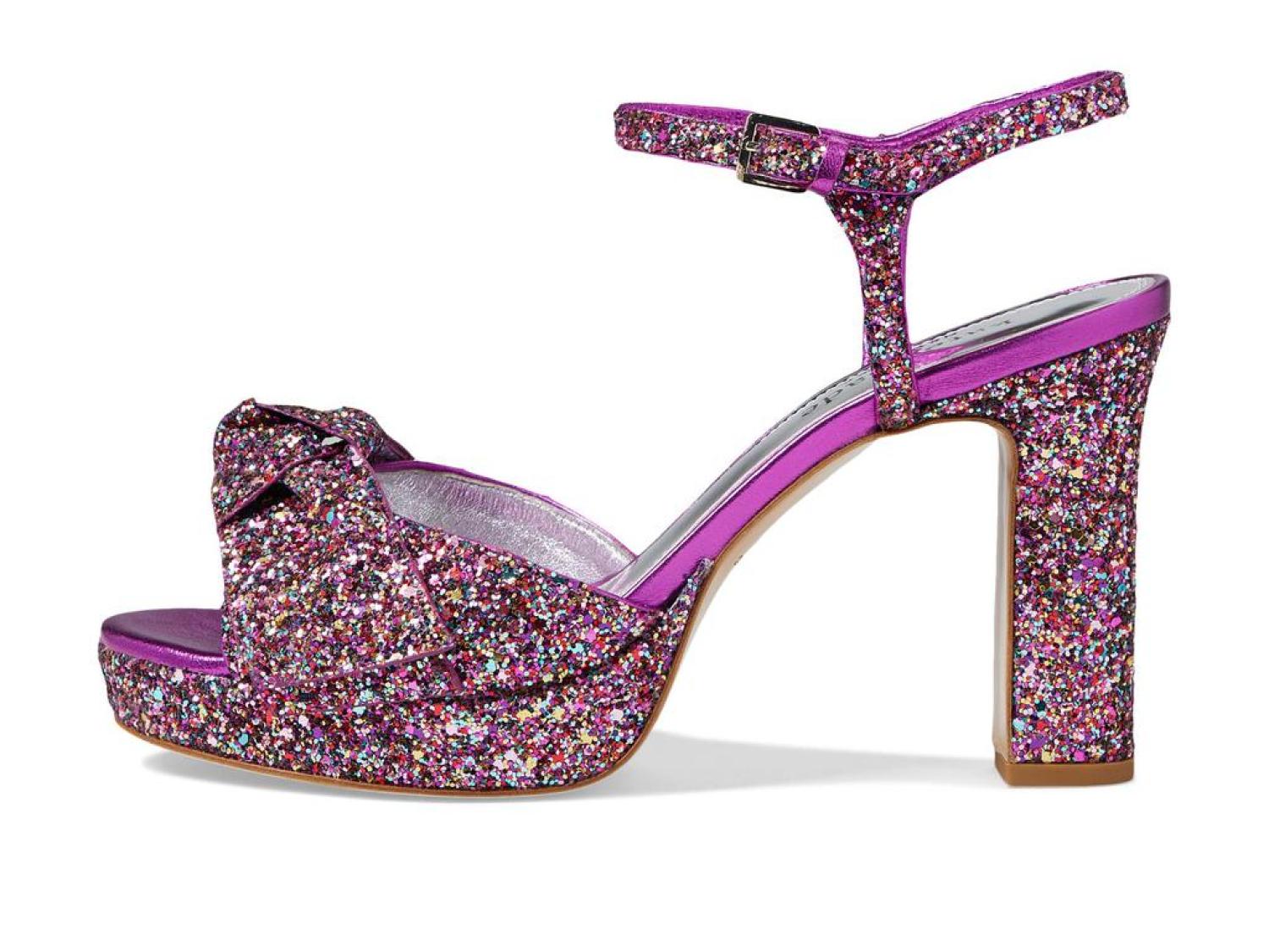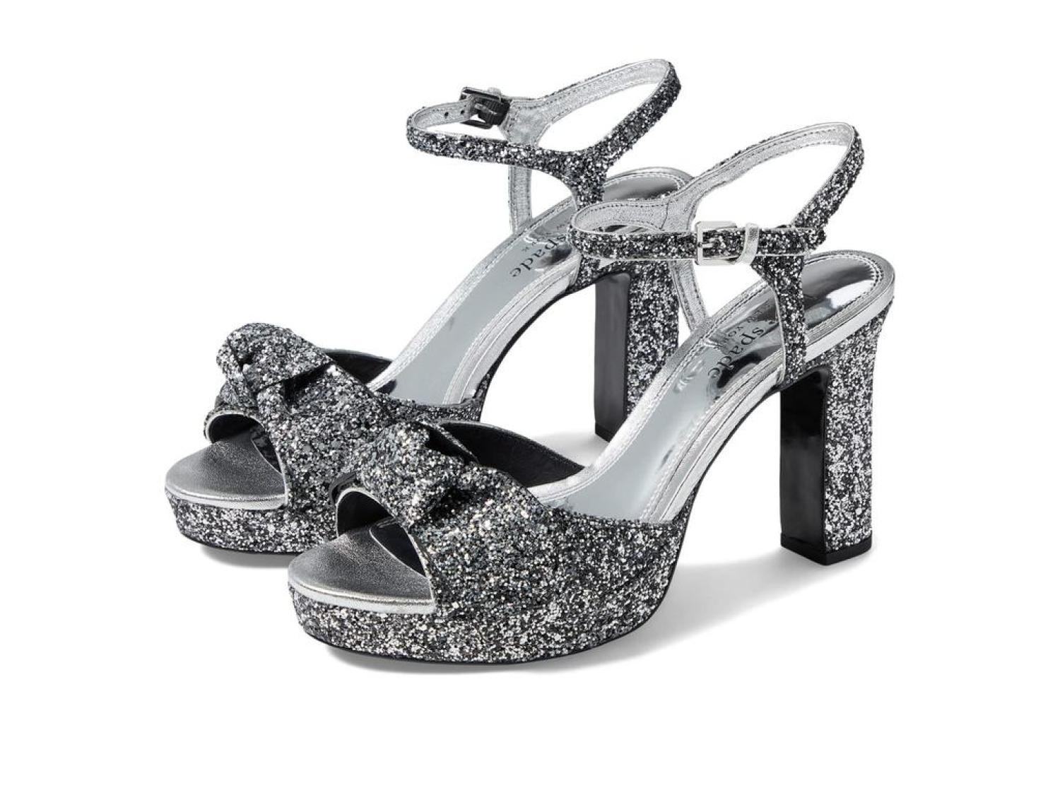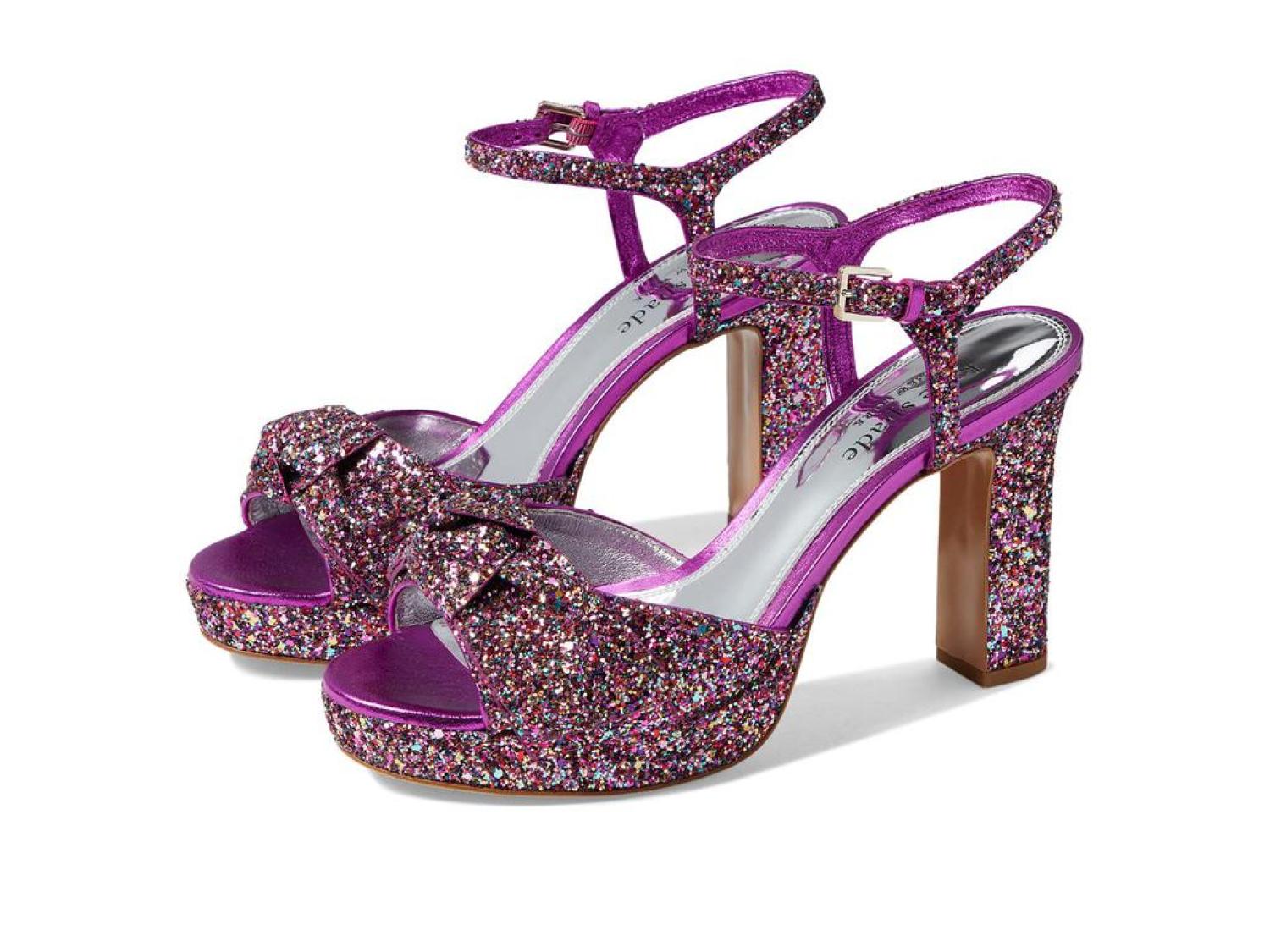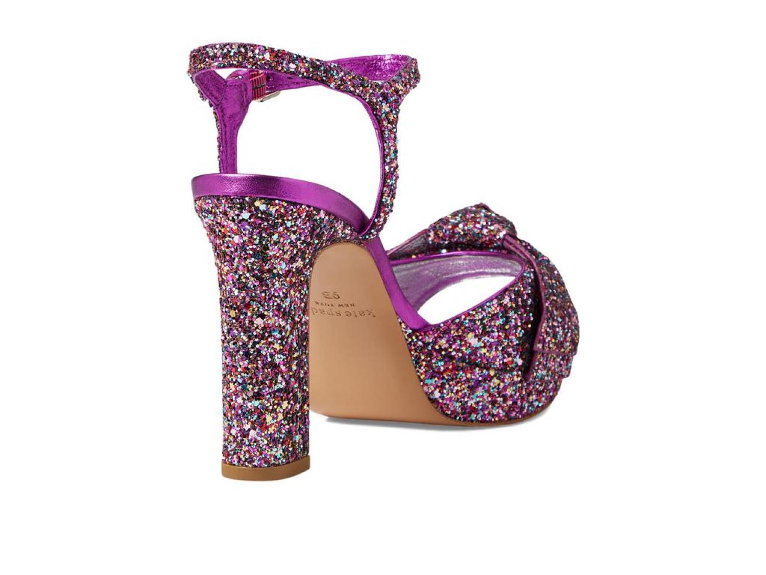 Instantly glam up your ensemble by wearing the stunning Kate Spade New York® Miya Heels. Leather and textile upper. Leather lining and synthetic insole. Allover shimmer detailing. Buckle strap closure. Round, open toe silhouette. Block heel style. Leather outsole. Made in Brazil. Product measurements were taken using size 9, width M. Please note that measurements may vary by size. Measurements: Heel Height: 4 in Weight: 12 oz Platform Height: 1 in-