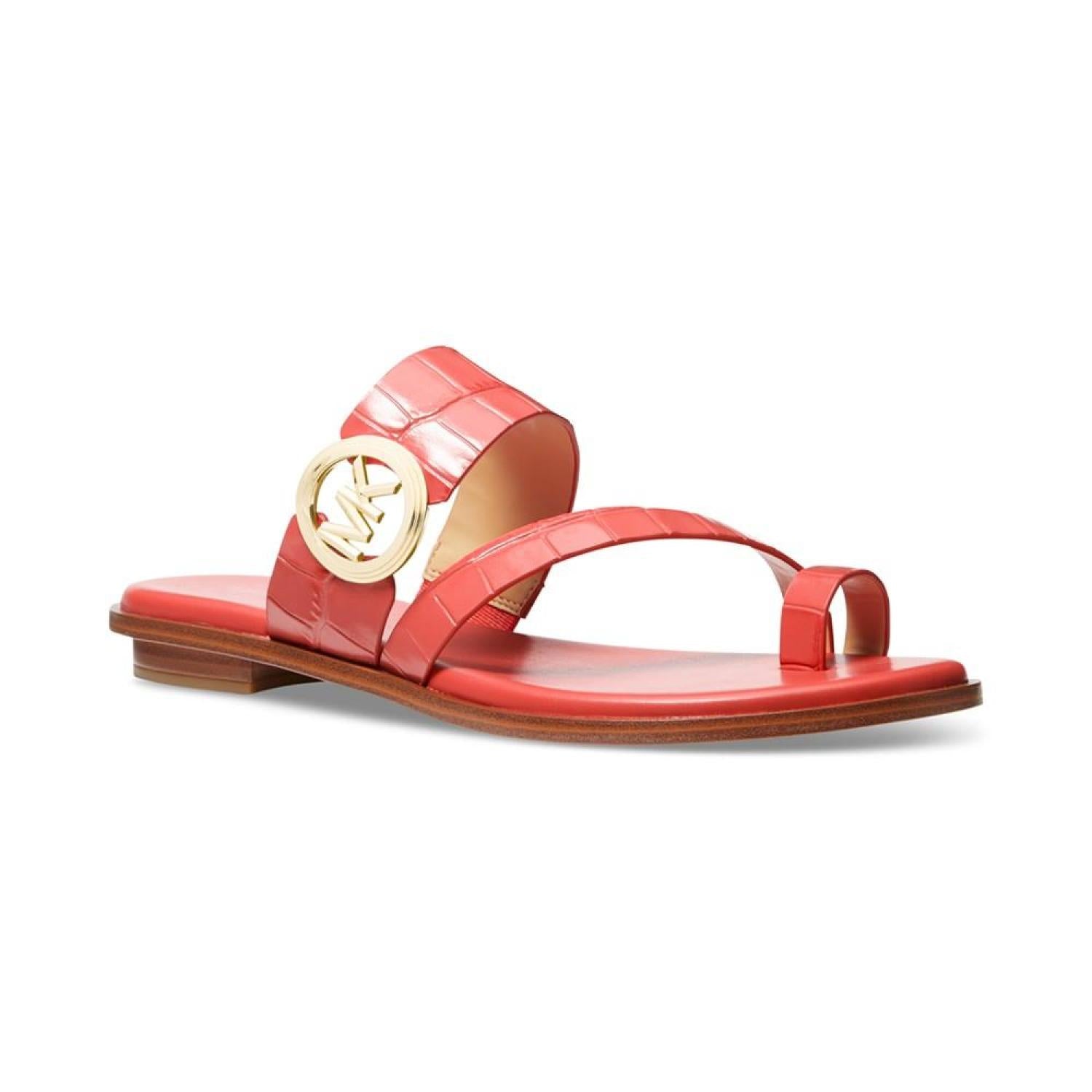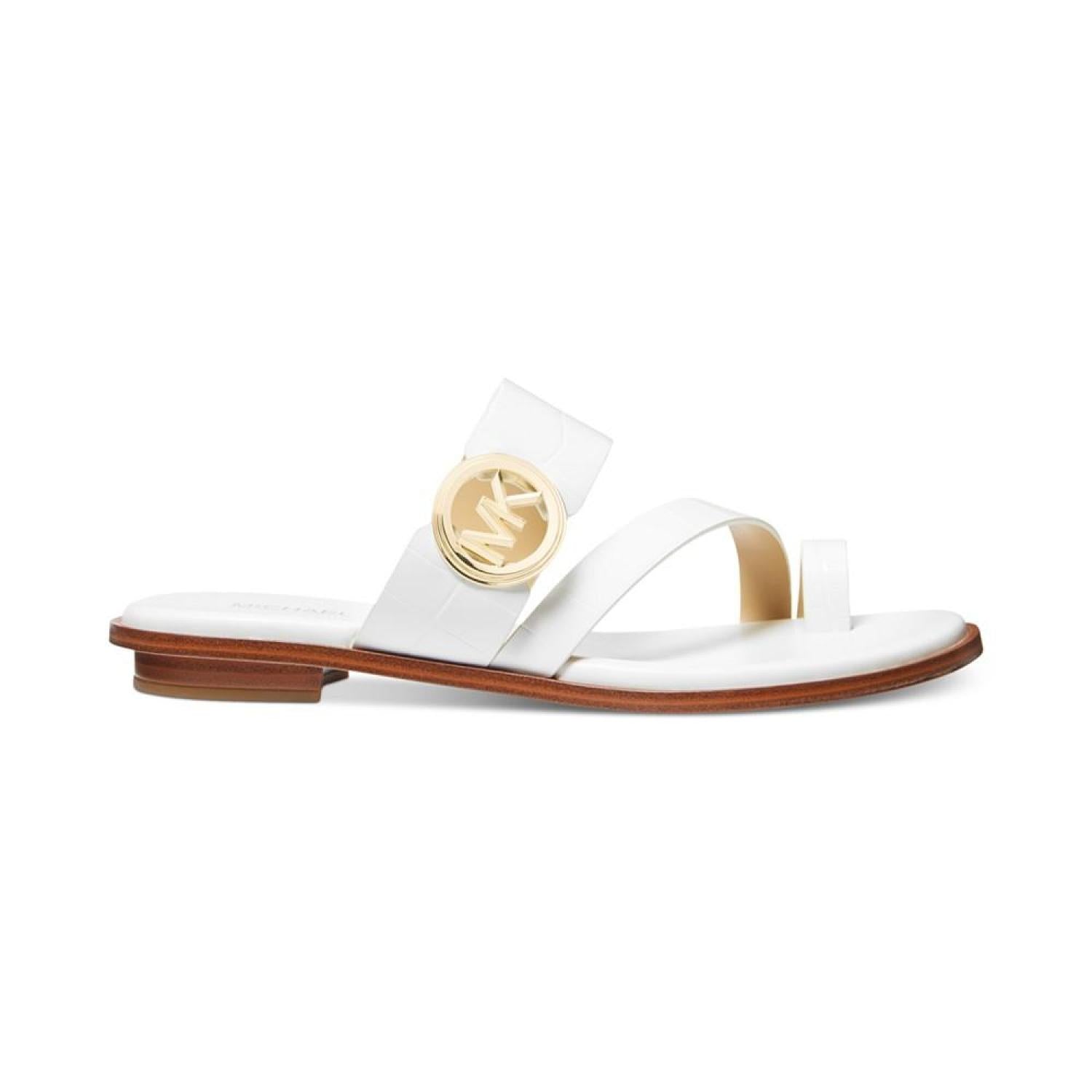 • Gold-tone hardware and signature style pair up with stylish toe-rings in the MICHAEL Michael Kors Vera sandals.