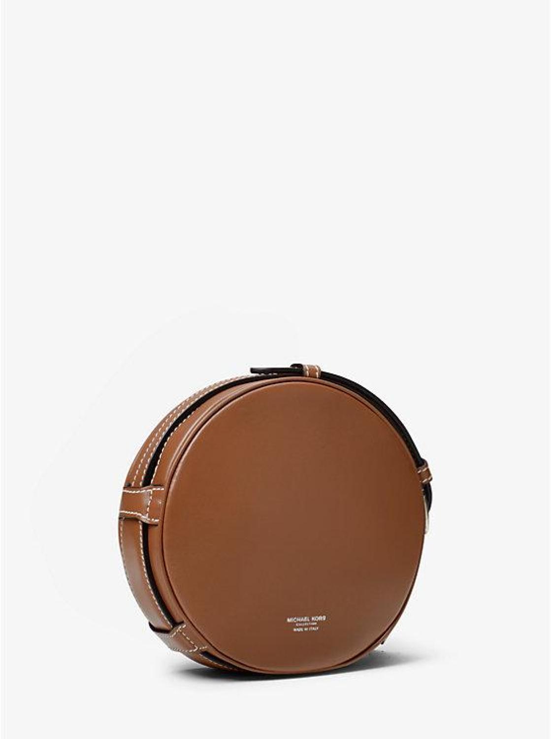 Our Monogramme crossbody bag is crafted from smooth calf leather with contrast topstitching for rich appeal, while the MKC hardware lends a luxe, novelty finish to the canteen silhouette. Wear it from day to dark. Made in Italy.