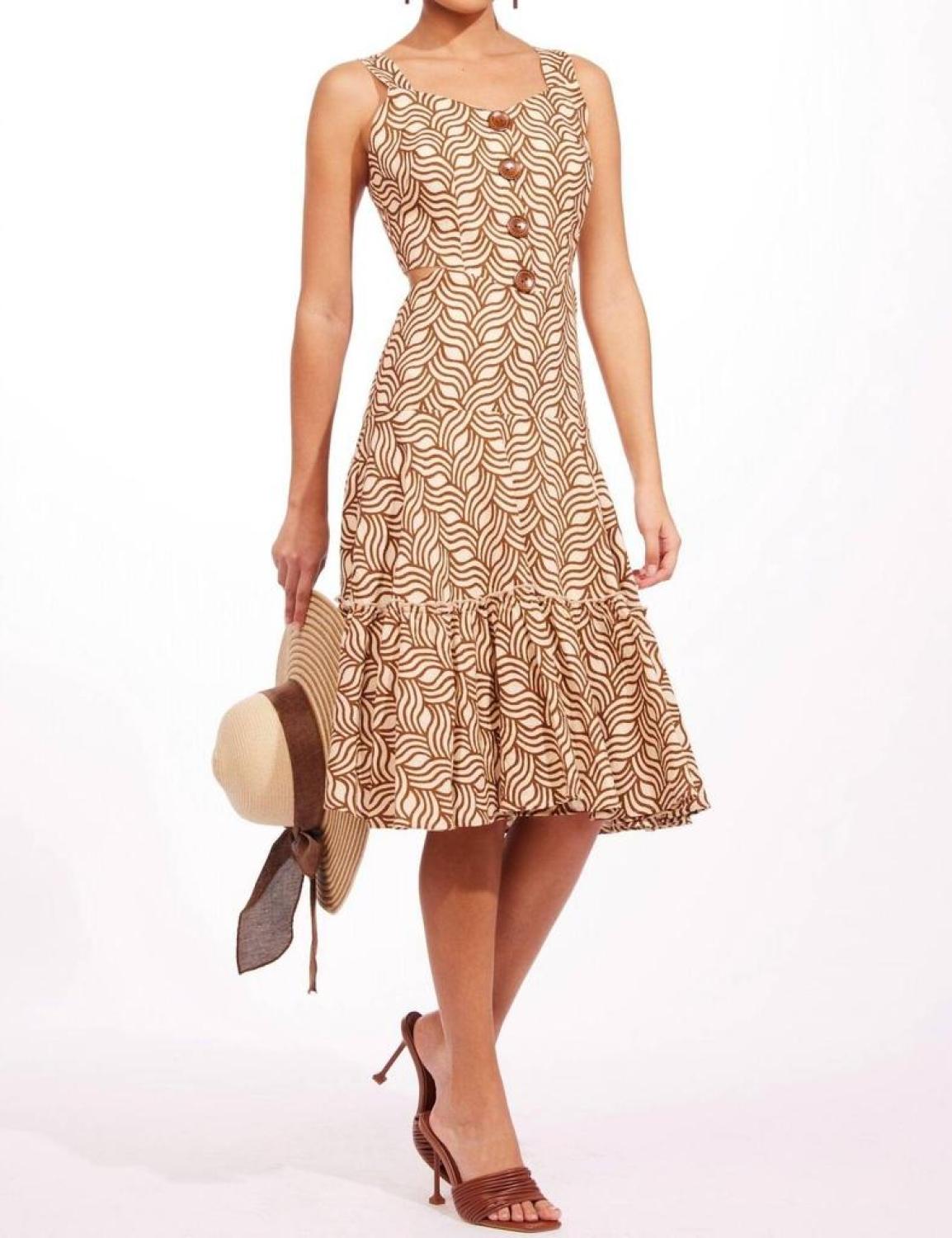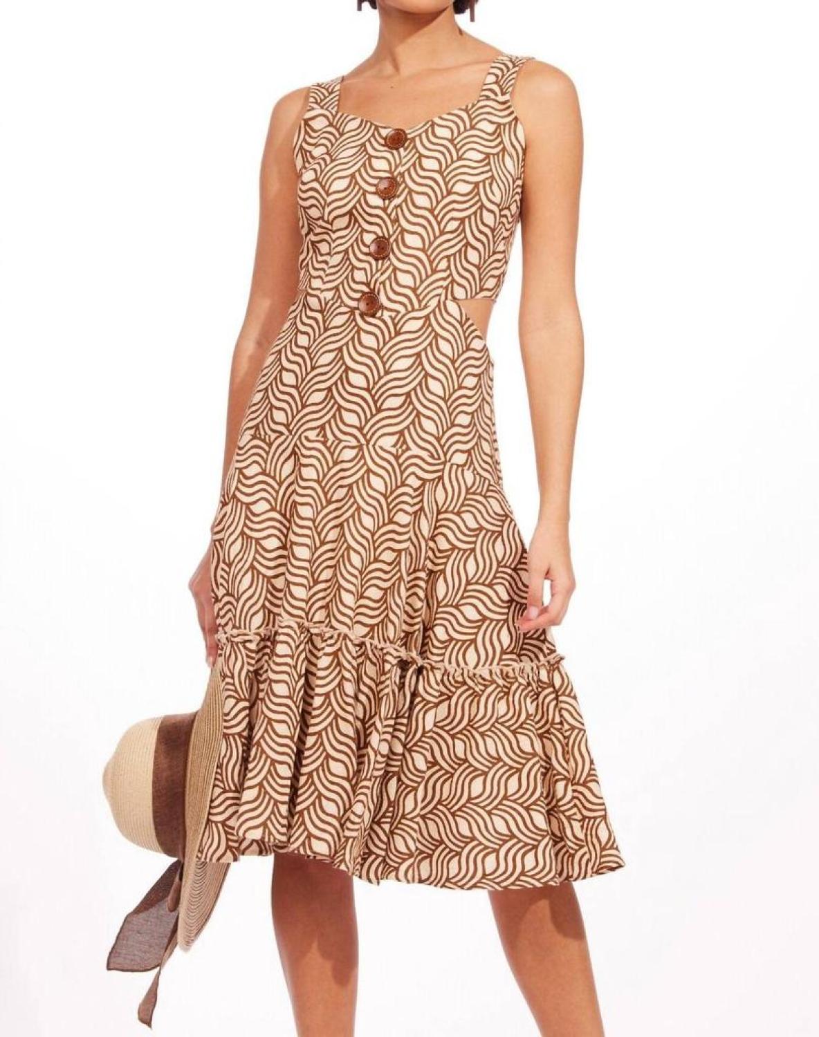 • The perfect length dress does exist.Fit and flare style. Back zip. Decorative buttons in the front. Fully lined. Cotton; polyester lining.