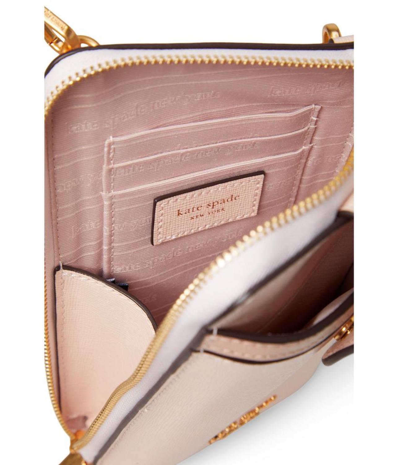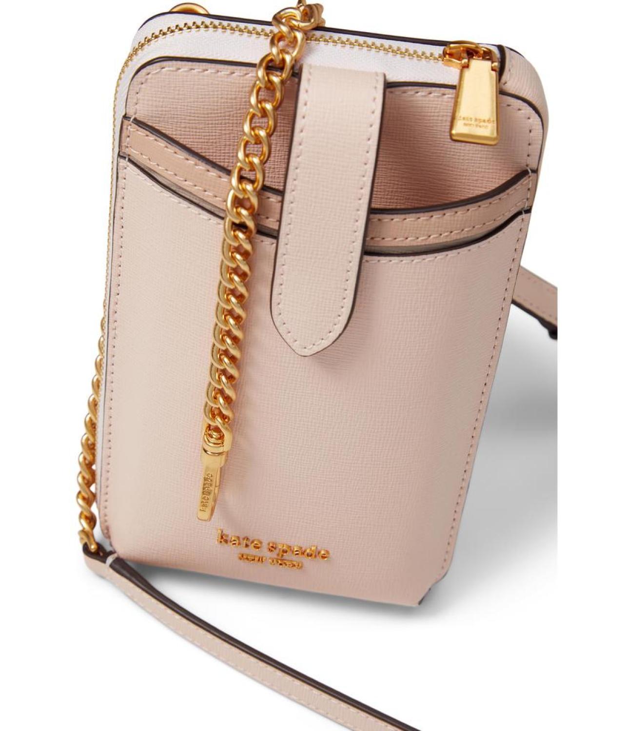 • Get that top-notch dapper look carrying the Kate Spade New York® Morgan Color-Blocked Saffiano Leather North/South Phone Crossbody. It is crafted with leather construction, a zippered closure, and six credit card slots.