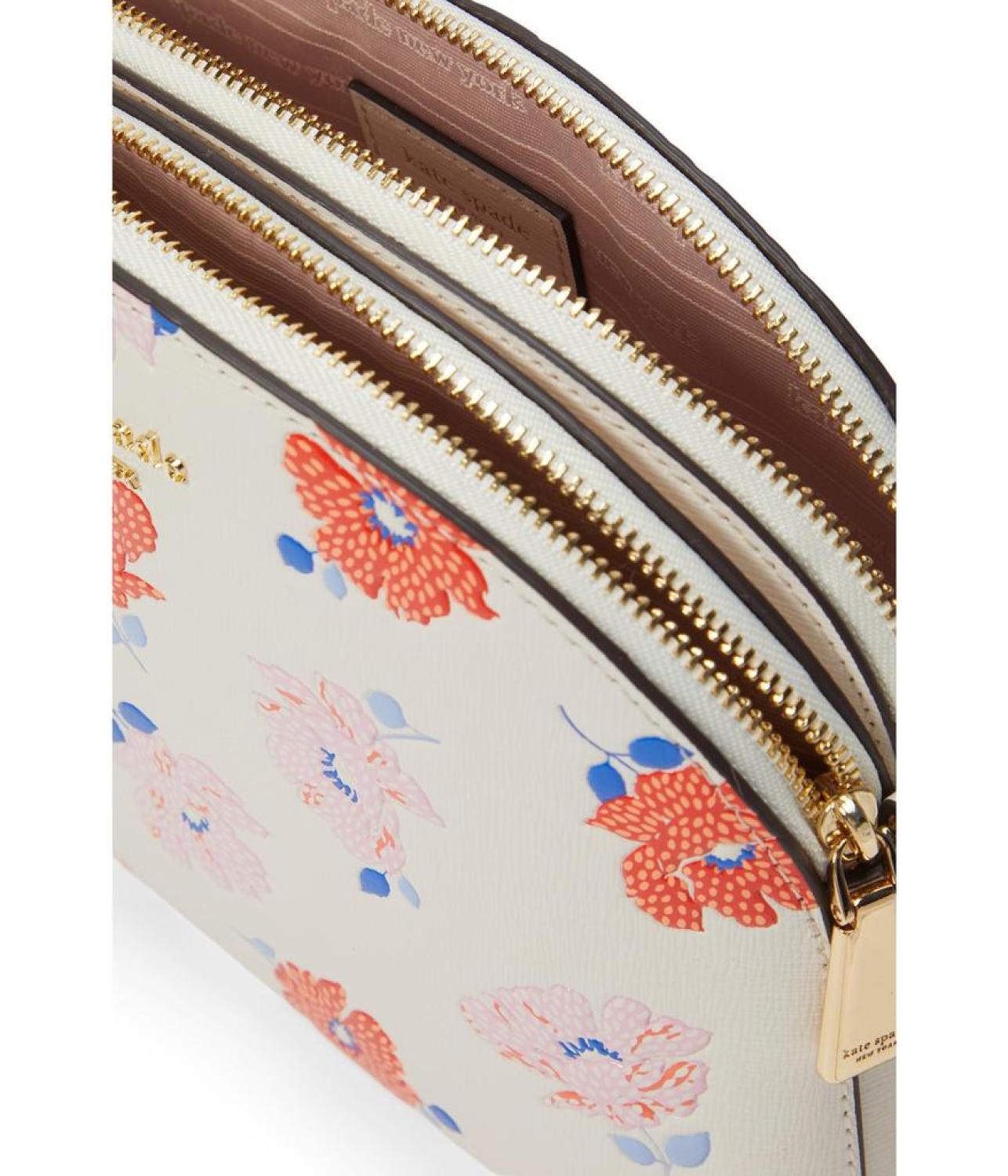 Morgan Dotty Floral Emboss Saffiano Leather Double Zip Dome Crossbody
