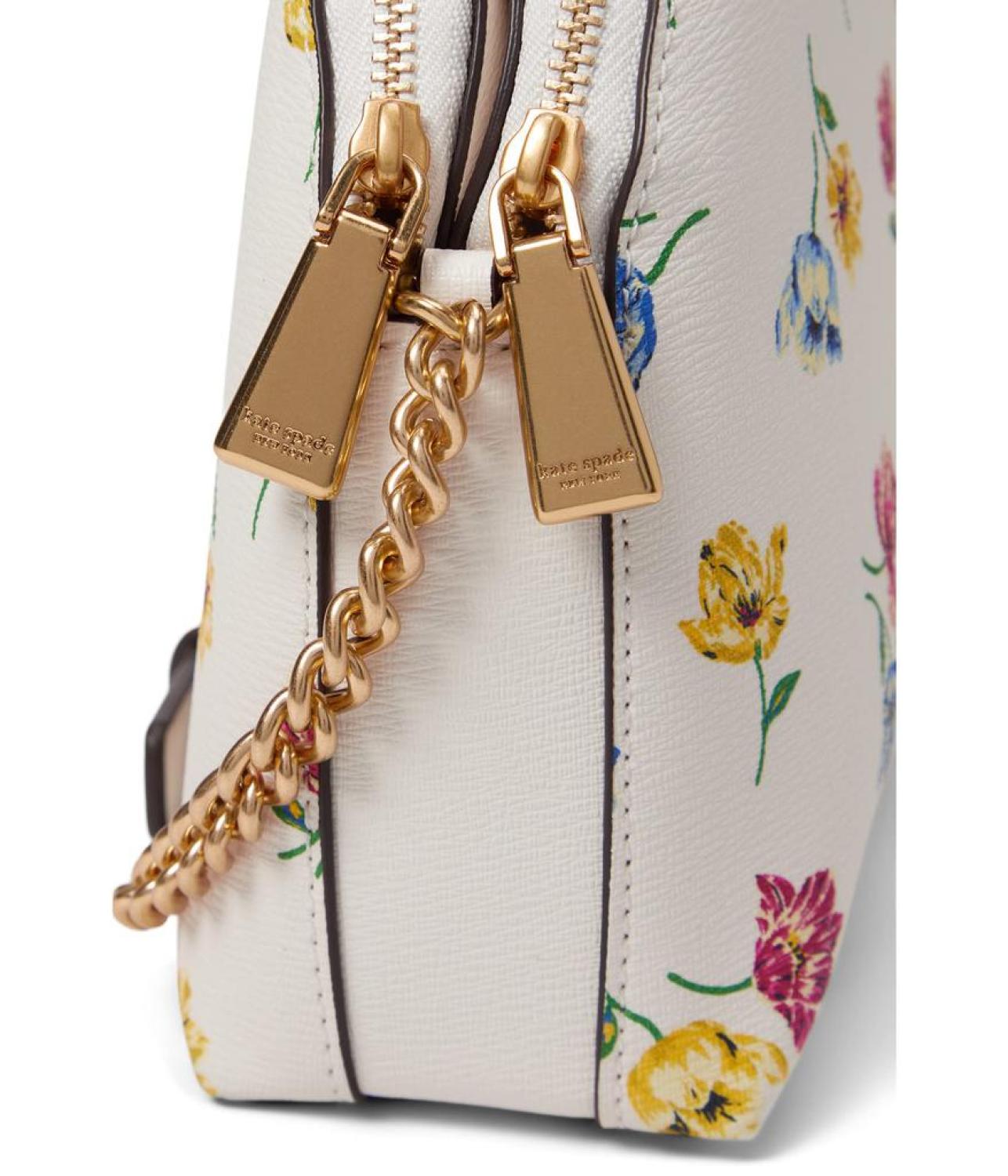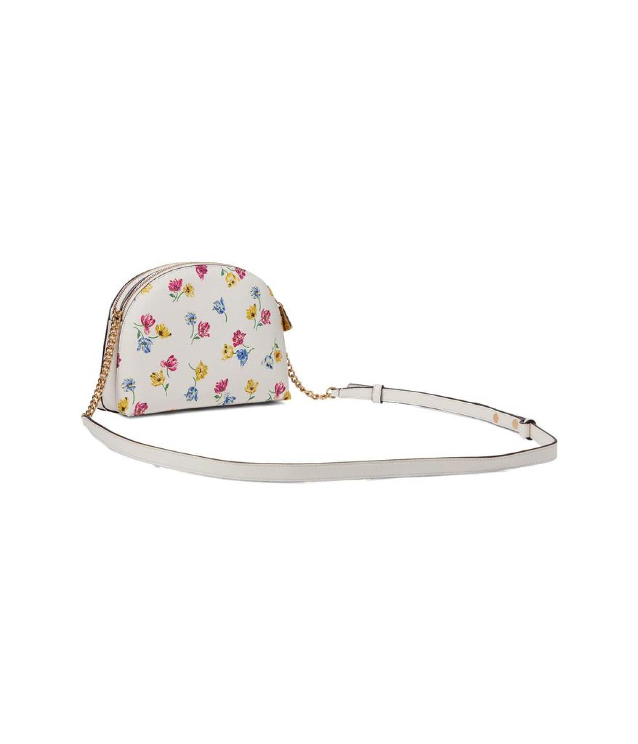 Make your look completely glossy by carrying   Kate Spade New York® Morgan Tulip Toss Printed Soft Milling PVC Double Zip Dome Crossbody handbag.