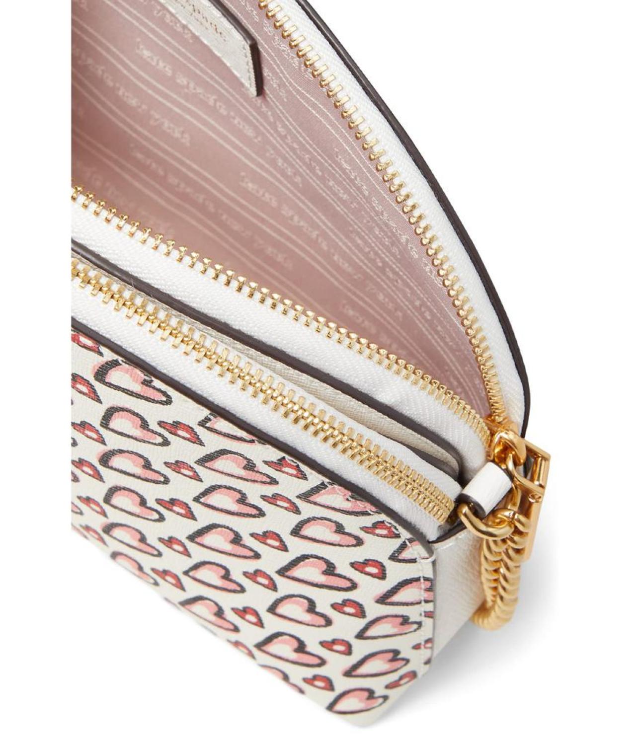 • Carry it as a crossbody or wear it on the side! The Kate Spade New York® Morgan Valentines Heart Print Double Zip Dome Crossbody Bag is durable and versatile with ample space to store your essentials.