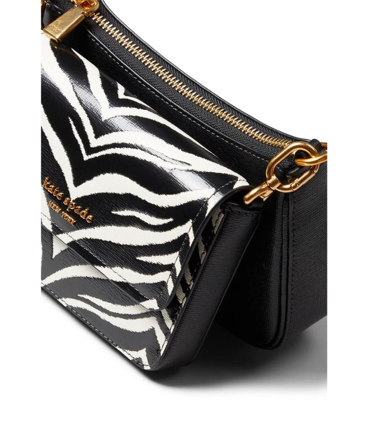 Perfect for your evening parties or night outs, the Kate Spade New York® Morgan Zebra Print Double Up Crossbody Bags have got sleek and chic profiles to elevate your ensembles. Both bags made of PVC. Solid crossbody bag features a zippered closure, a detachable crossbody strap, and three interior back wall card slots. Small zebra-printed bag features a magnetic snap with flap closure and one exterior back compartment. Embossed brand name. Polyester lining. Imported. Please note, the hardware color and interior lining may differ from the color shown in the photo. Measurements: Bottom Width: 8 in Depth: 1 3/4 in Height: 4 1/4 in Strap Length: 50 in Strap Drop: 25 in Weight: 15 oz