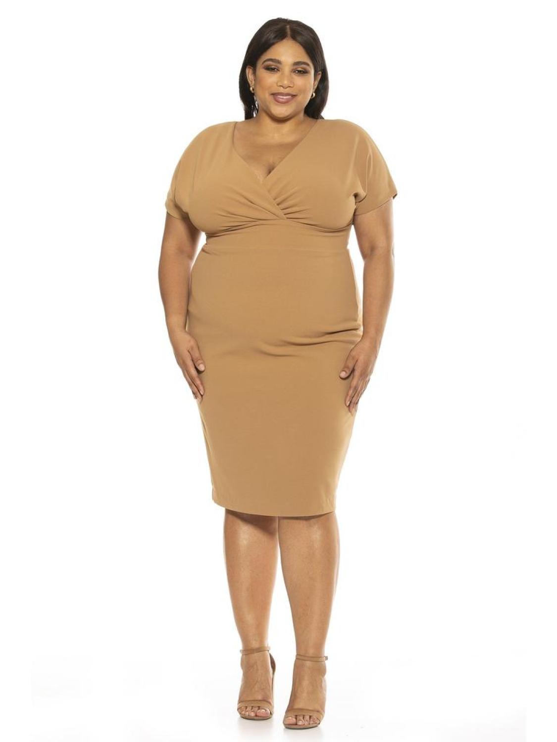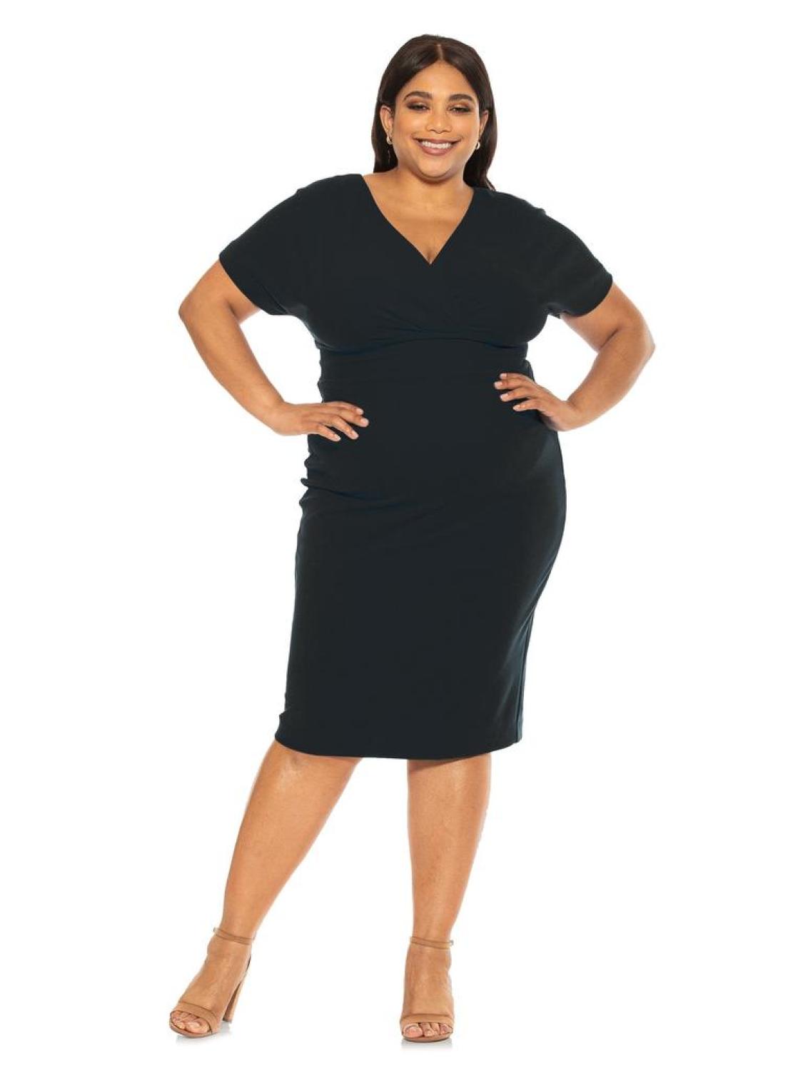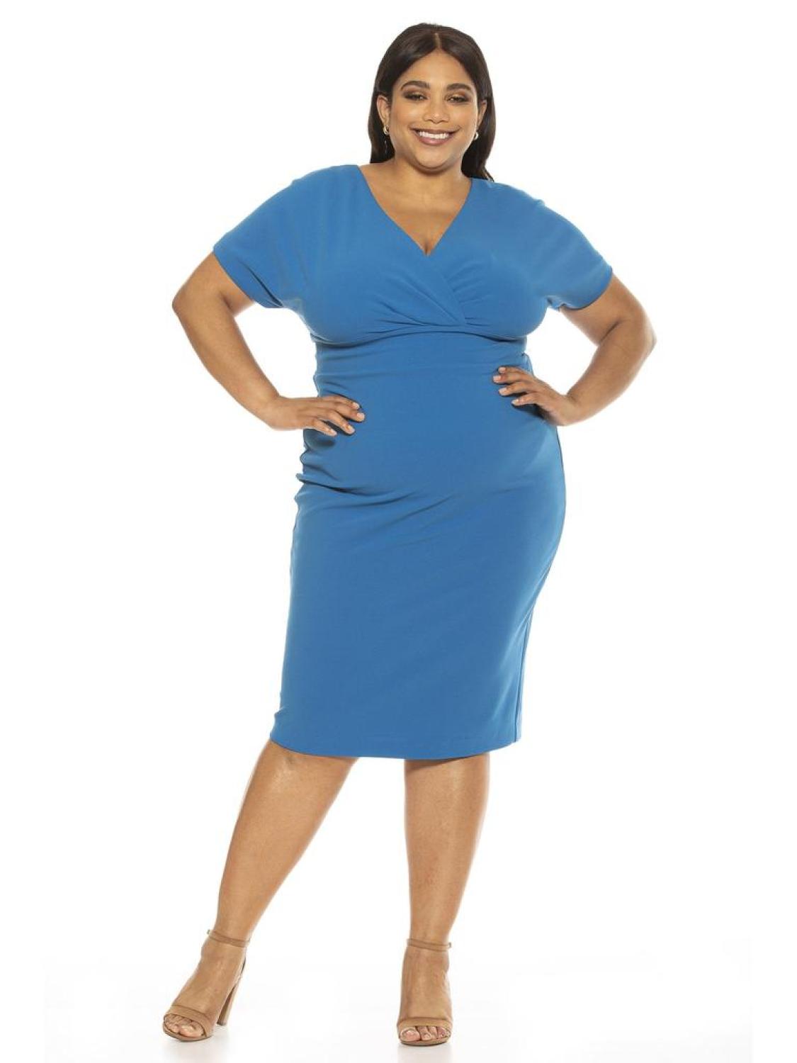 • PRODUCT FEATURES Surplice neckline Short sleeves Above the knee length Sheath Dress 95% Polyester, 5% Spandex Lined - 100% Polyester Machine Wash Imported Style D3641PLS