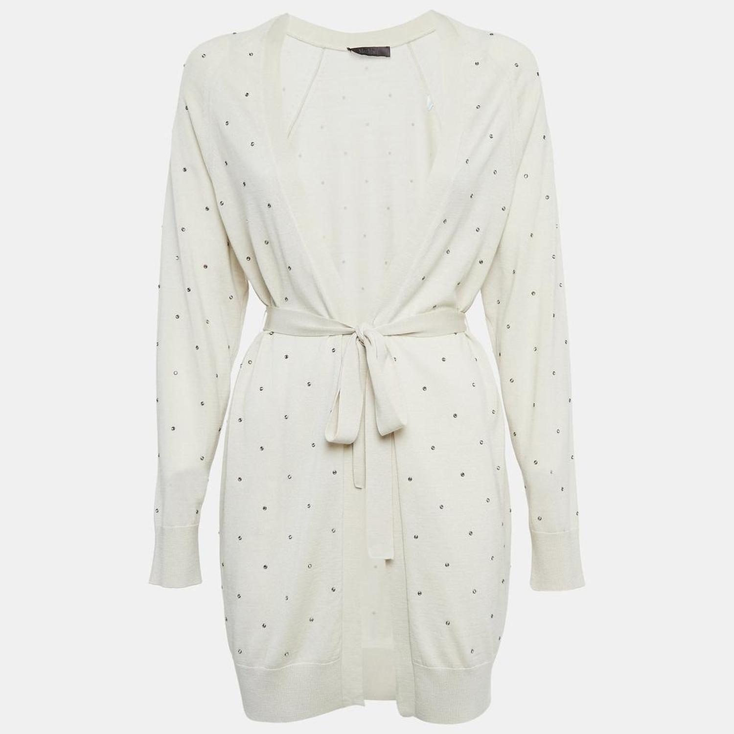 Off White Embellished Knit Open Front Cardigan M