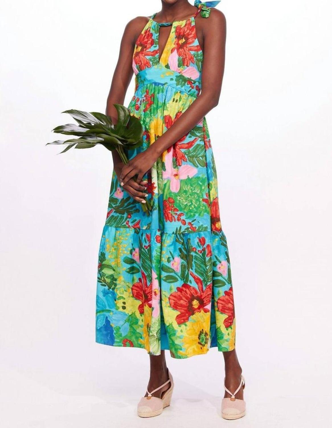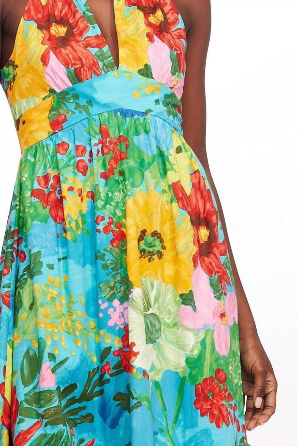 Who doesn't love a good maxi dress? This one you'll be reaching for season after season.Cotton, Elastane; Polyester lining. Featuring bright, floral print and halter-style neck with a shoulder tie. Side zip. Hand wash. Dimensions - Falls 53.75" from shoulder