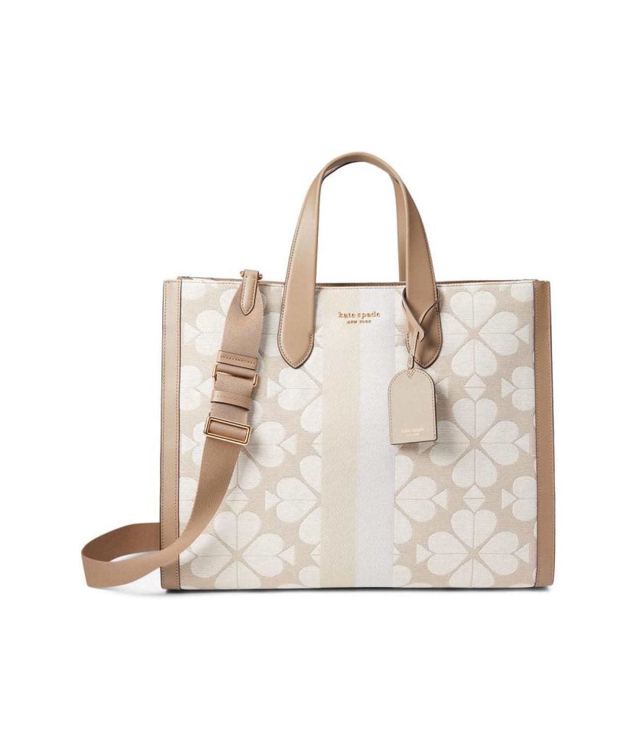 • Travel in style carrying the stylish and useful Kate Spade New York® Oversized Spade Flower Jacquard Stripe Manhattan Large Tote bag.