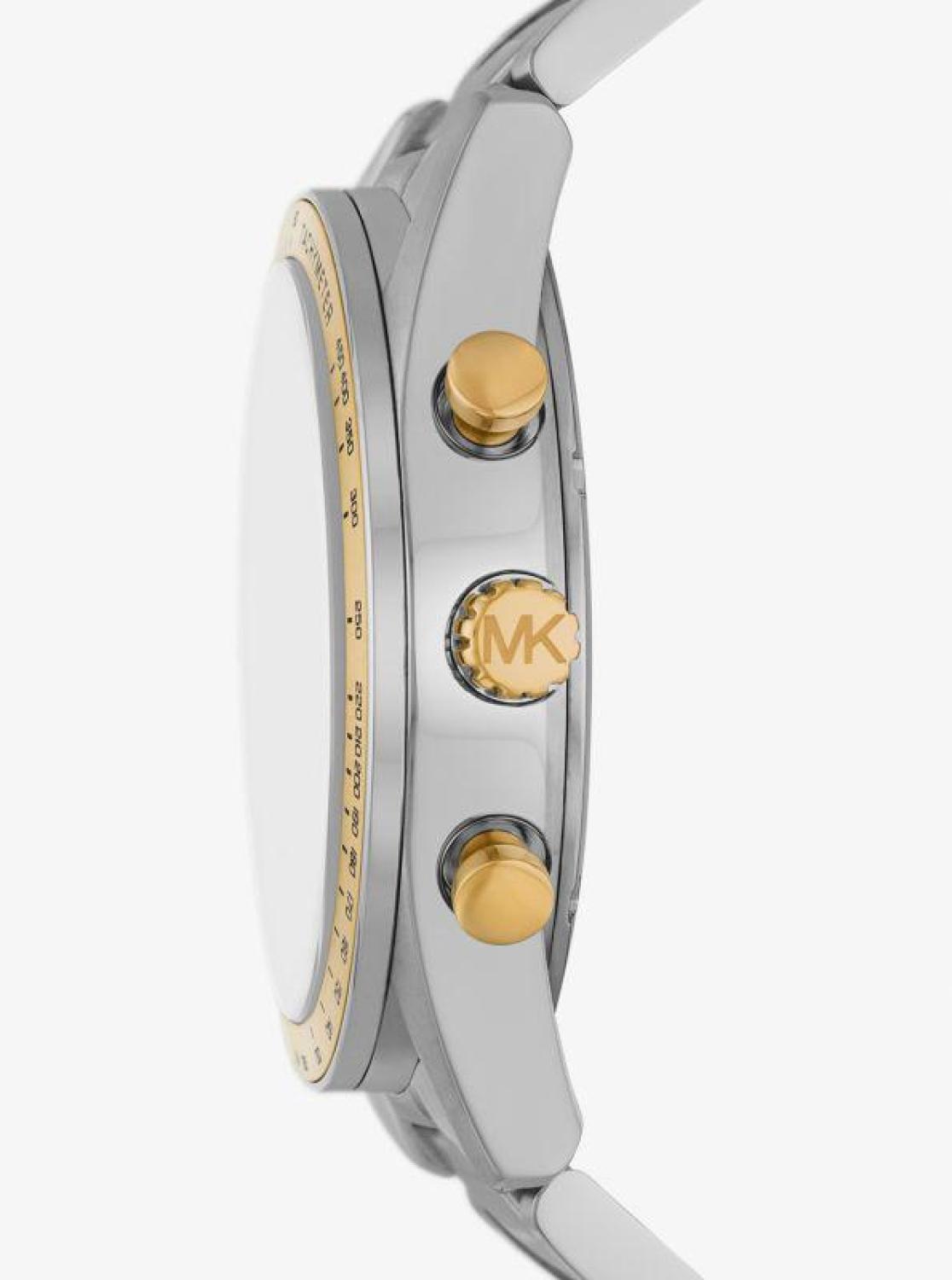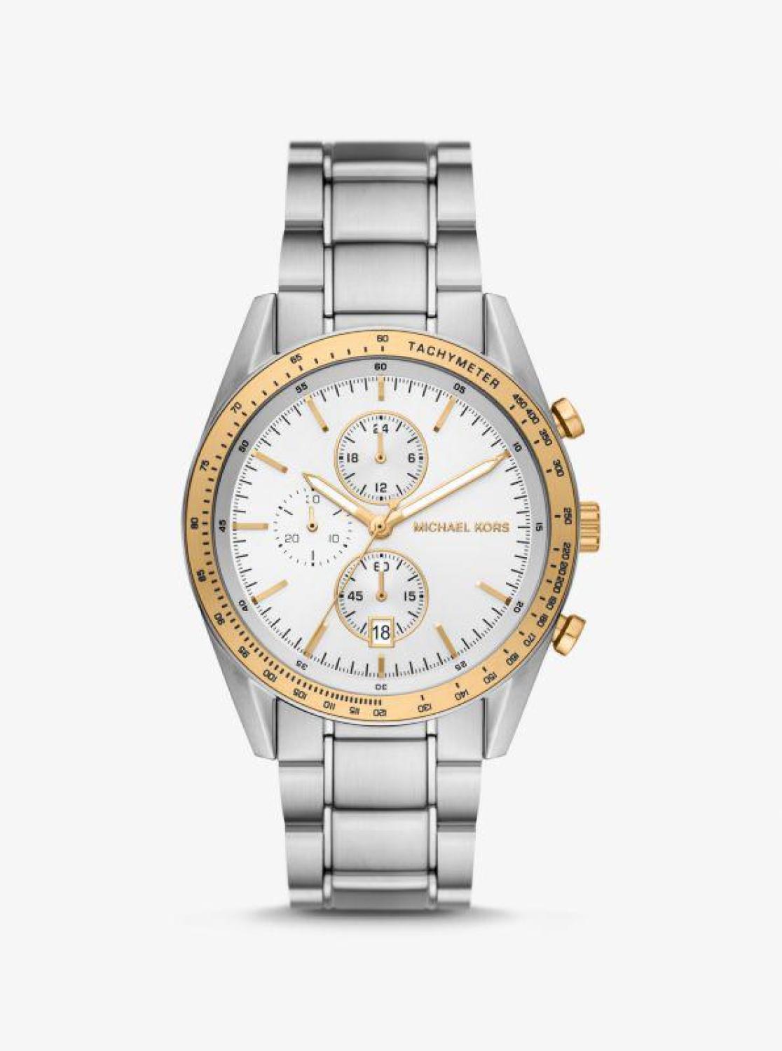 Stay on time in style with the Warren watch, a modern yet classic timepiece. A nylon strap complements the gold-tone accents and create a stylish contrast against the silver-tone stainless steel case, while the dial features chronograph details and a tachymeter scale. Slip it on before your next adventure. • Oversized watch • Stainless steel • Silver-tone/gold-tone hardware • Oversized • 42mm case • Quartz/chronograph movement • Clasp fastening • Water resistant up to 5 ATM • 2-year warranty • Imported • Oversized watch • Stainless steel • Silver-tone/gold-tone hardware • Oversized • 42mm case • Quartz/chronograph movement • Clasp fastening • Water resistant up to 5 ATM • 2-year warranty • Imported