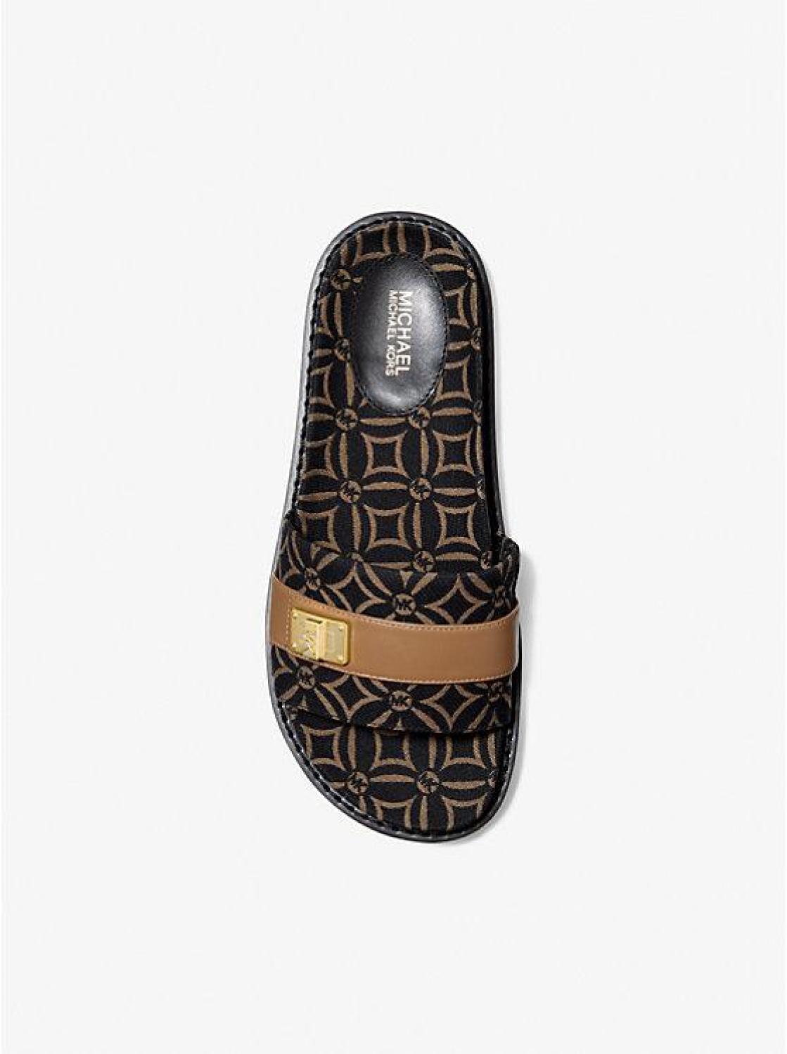 Embrace a cool, retro mood with our Padma slide sandals. The sporty yet glamorous jacquard features a graphic take on our “MK” initials. A smooth leather band across the upper is finished with our turn-lock logo hardware. Wear them out to lunch with a tank top and Bermuda shorts. Slide sandal Logo jacquard 59% cotton/41% polyester Lining: polyurethane blend Sole: textile Open toe Slip on Imported Slide sandal Logo jacquard 59% cotton/41% polyester Lining: polyurethane blend Sole: textile Open toe Slip on Imported