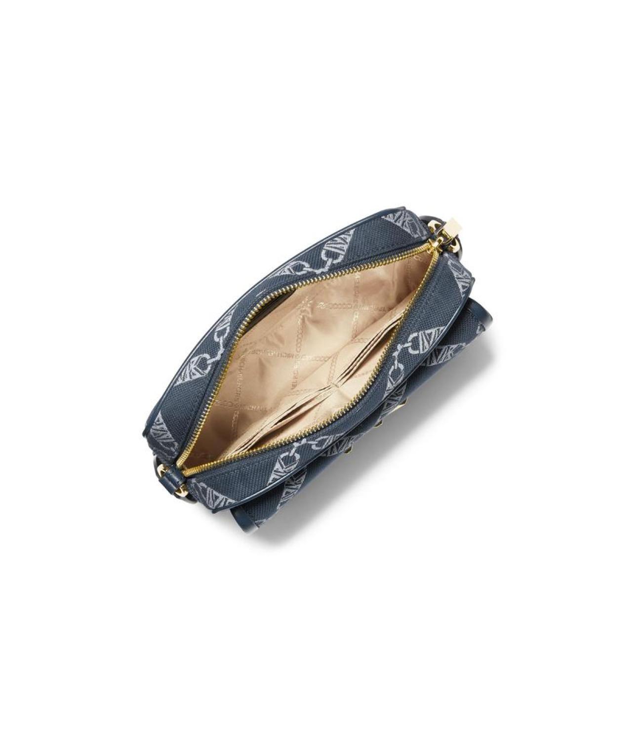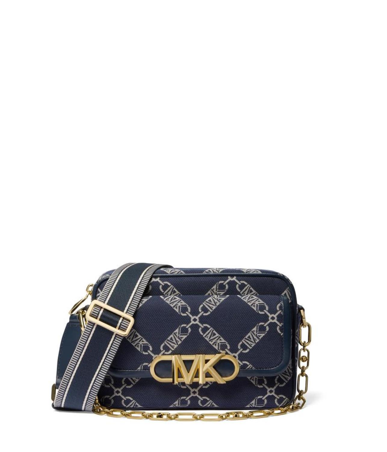 • Achieve that next-level look and enjoy versatile styling options no matter where you go, carrying the MICHAEL Michael Kors® Parker Medium Chain Swag Camera Crossbody. Crafted with cotton and polyester, this leather-trimmed handbag features allover chain-logo design. It is secured with a zippered closure on the top and decorated with goldtone logo hardware. You get an adjustable crossbody strap for ease of styling and a detachable chain-link strap for an extra dose of flair to your look.