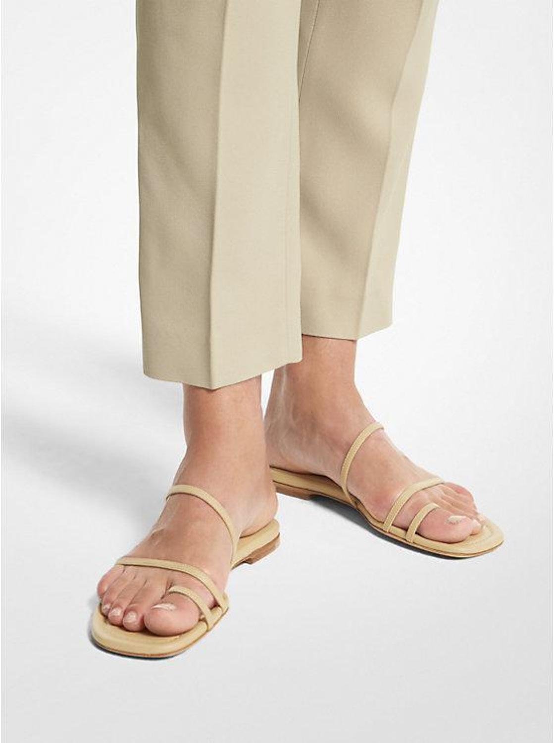 Our versatile Patti sandals perfectly capture the polished resort glamour seen on the Spring/Summer 2023 runway. Constructed from Italian-made leather in a slip-on silhouette with minimal straps, the timeless silhouette makes them a worthy investment. Style them effortlessly with almost anything, from the season’s halter tops and high-waisted trousers to casual dresses. Slide sandal Leather 100% leather Lining: 100% leather Sole: rubber Open toe Slip on Heel height: 0.5” Heel type: stacked Made in Italy Slide sandal Leather 100% leather Lining: 100% leather Sole: rubber Open toe Slip on Heel height: 0.5” Heel type: stacked Made in Italy