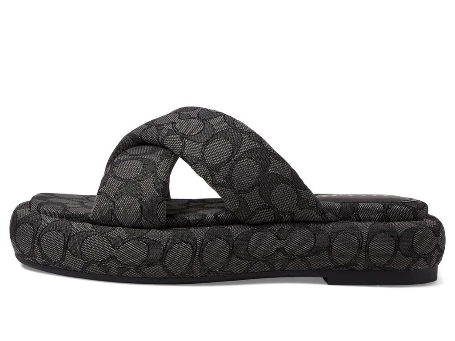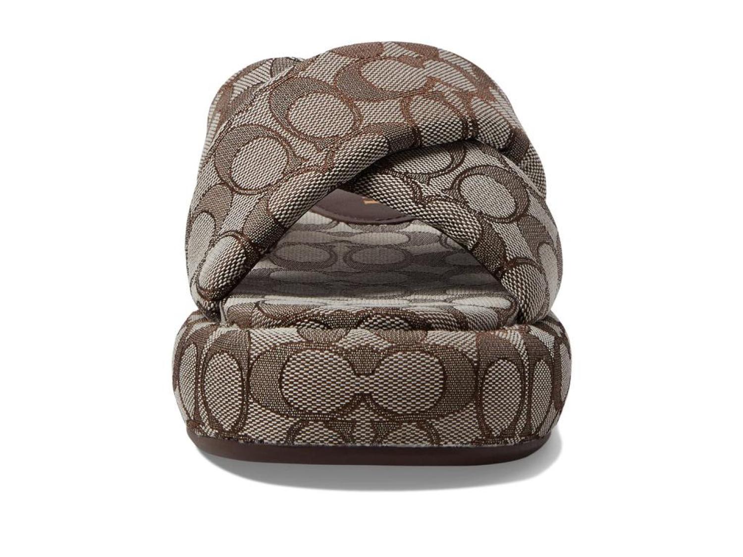 Please Note: COACH™ items cannot be shipped to military addresses (APO or FPO) and addresses in Hawaii, the Virgin Islands, Guam or any other locations outside of the continental US. A perfect blend of style and comfort, the COACH® Penelope Jacquard Sandals are a must-have if you love to keep it simple and stylish! Textile upper. Textile, synthetic lining and insole. Slip-on style. Allover brand's signature monogram print. Criss-cross style straps. Open toe silhouette. Rubber outsole with added traction. Imported. Product measurements were taken using size 9, width B - Medium. Please note that measurements may vary by size. Measurements: Weight: 15 oz-