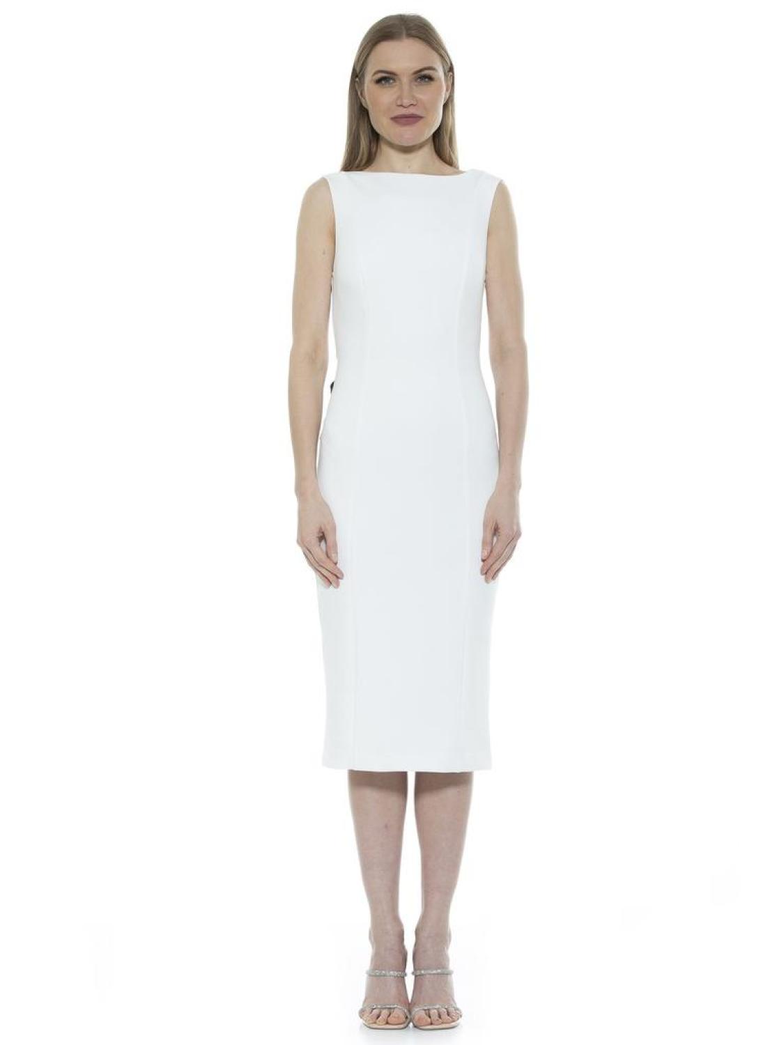 • PRODUCT FEATURES Invisible zip closure Boat neck Sleeveless 95% Polyester, 5% Spandex Lining - 100% Polyester Machine Wash Imported Style D4031