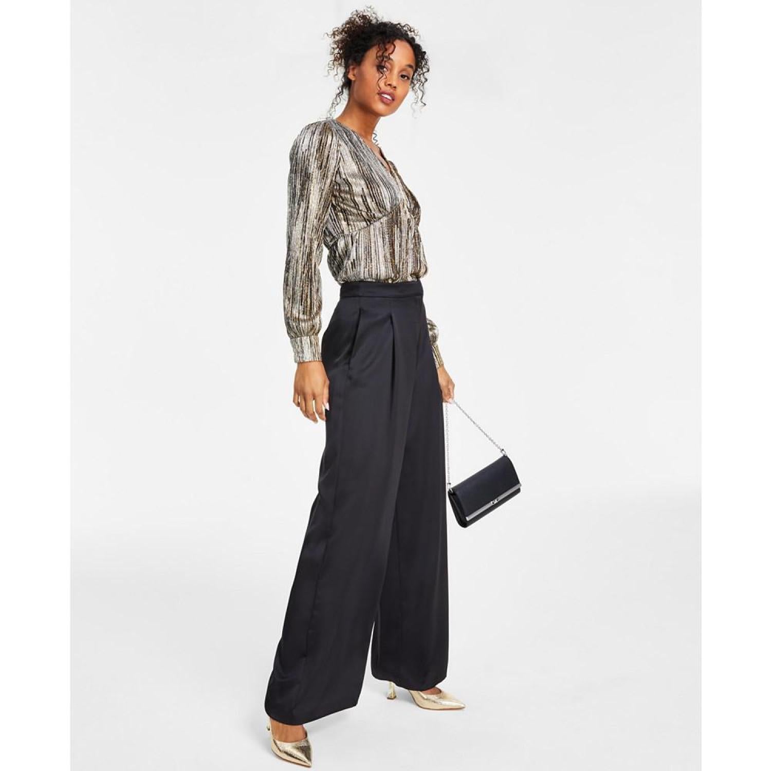 • A pair of petite pants from MICHAEL Michael Kors combines luxe satin fabric with a wide-leg silhouette that's designed to hit at all the right places on a shorter frame.