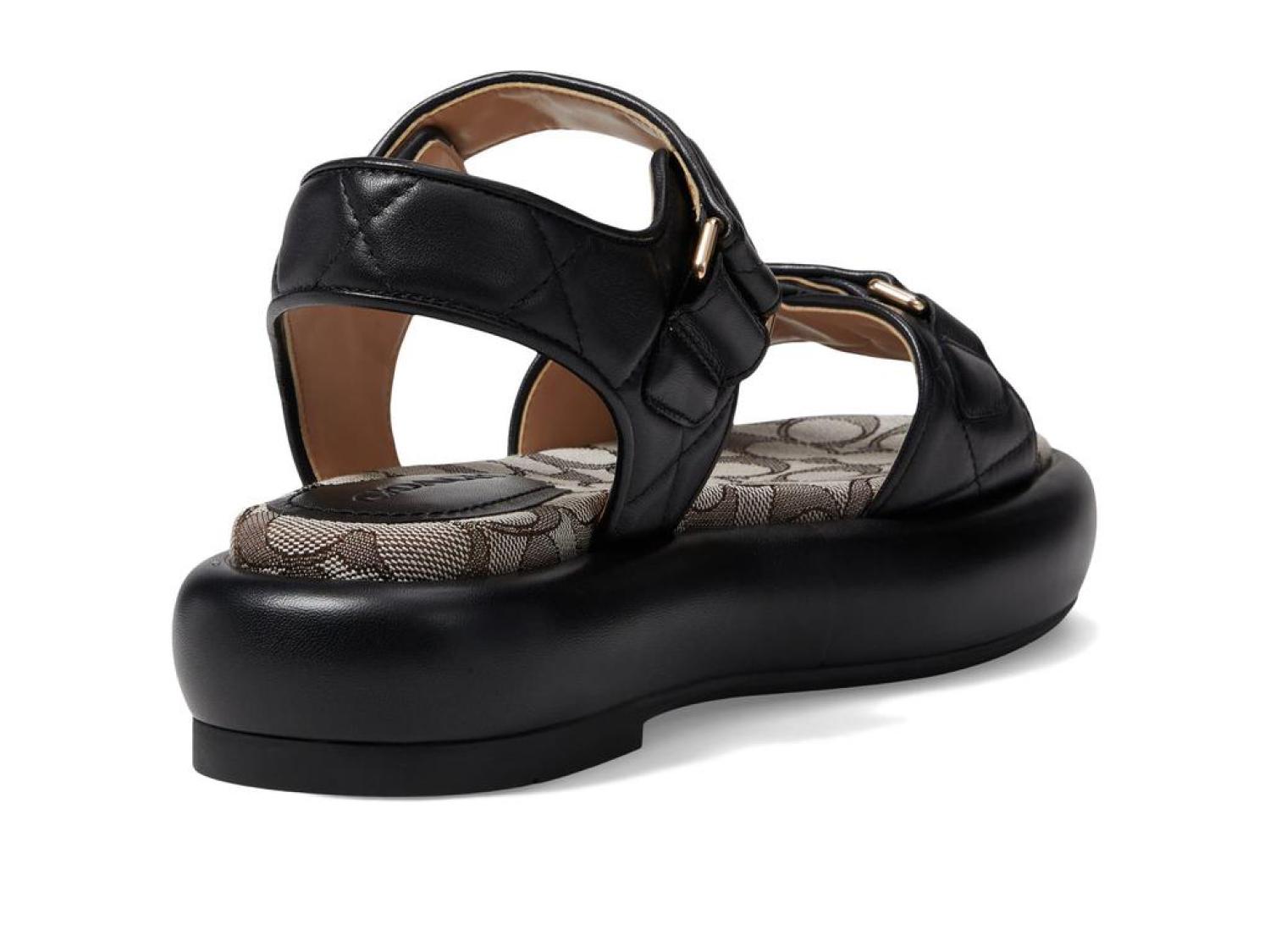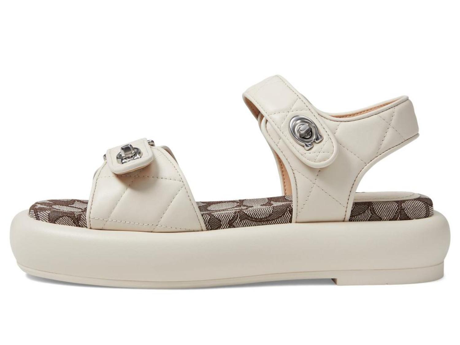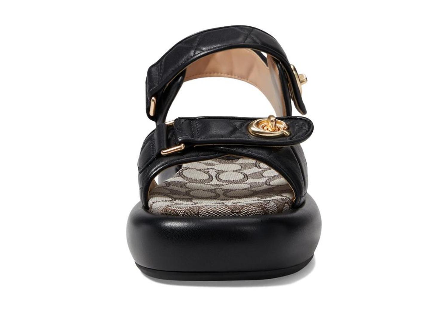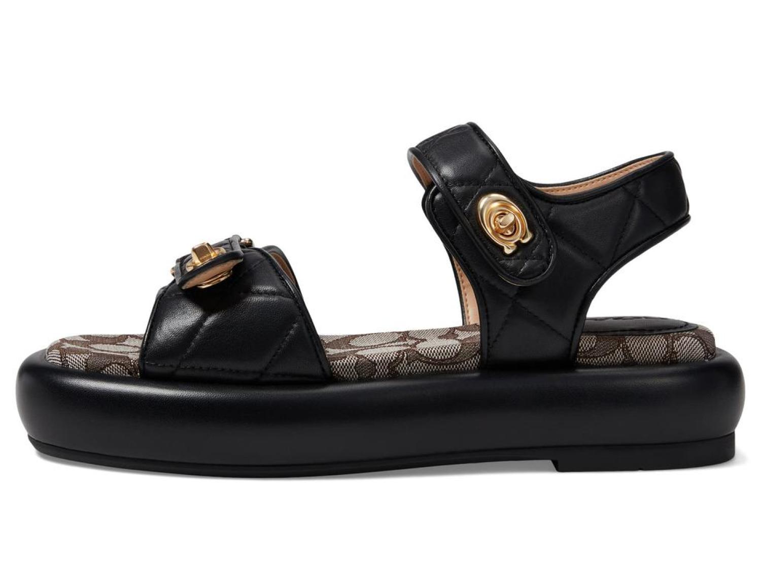 Please Note: COACH™ items cannot be shipped to military addresses (APO or FPO) and addresses in Hawaii, the Virgin Islands, Guam or any other locations outside of the continental US. Let your feet breath in style and comfort wearing the COACH® Peyton Leather Sandal. Leather upper. Man-made leather lining. Signature jacquard footbed. Signature turnlocks closure for a heritage touch. Two-strap style. Open round toe. Rubber outsole. Imported.