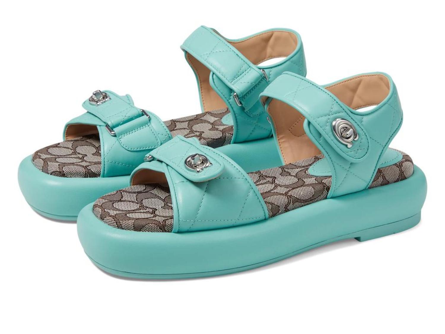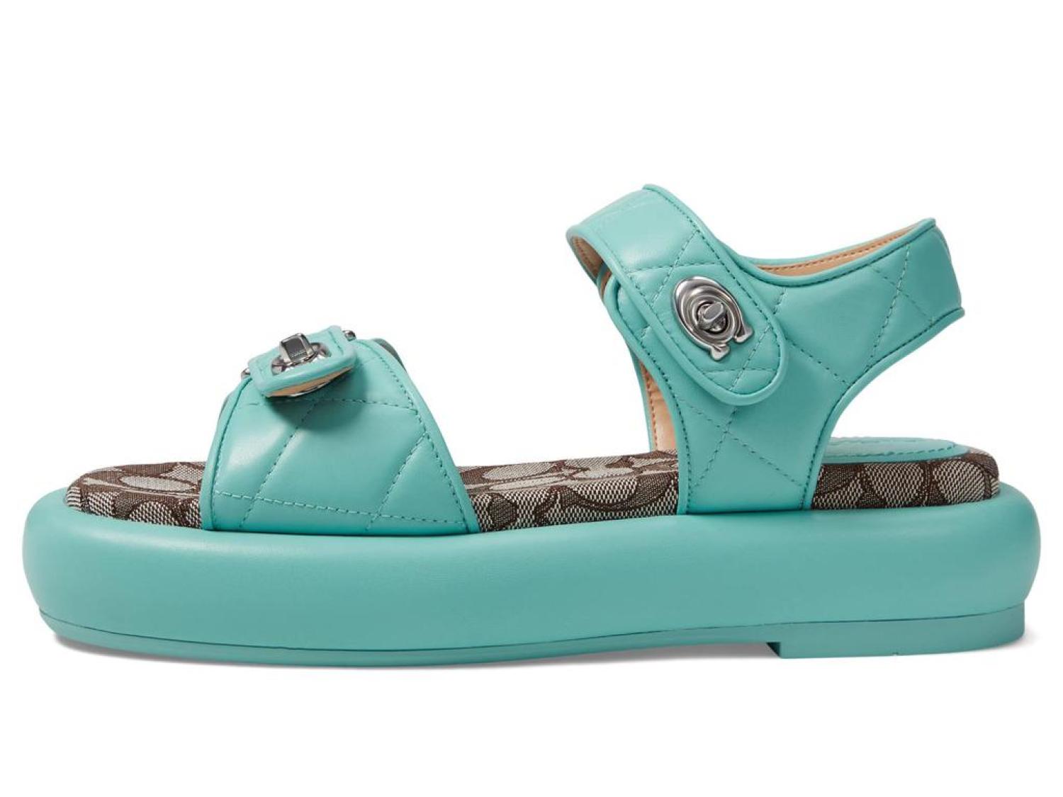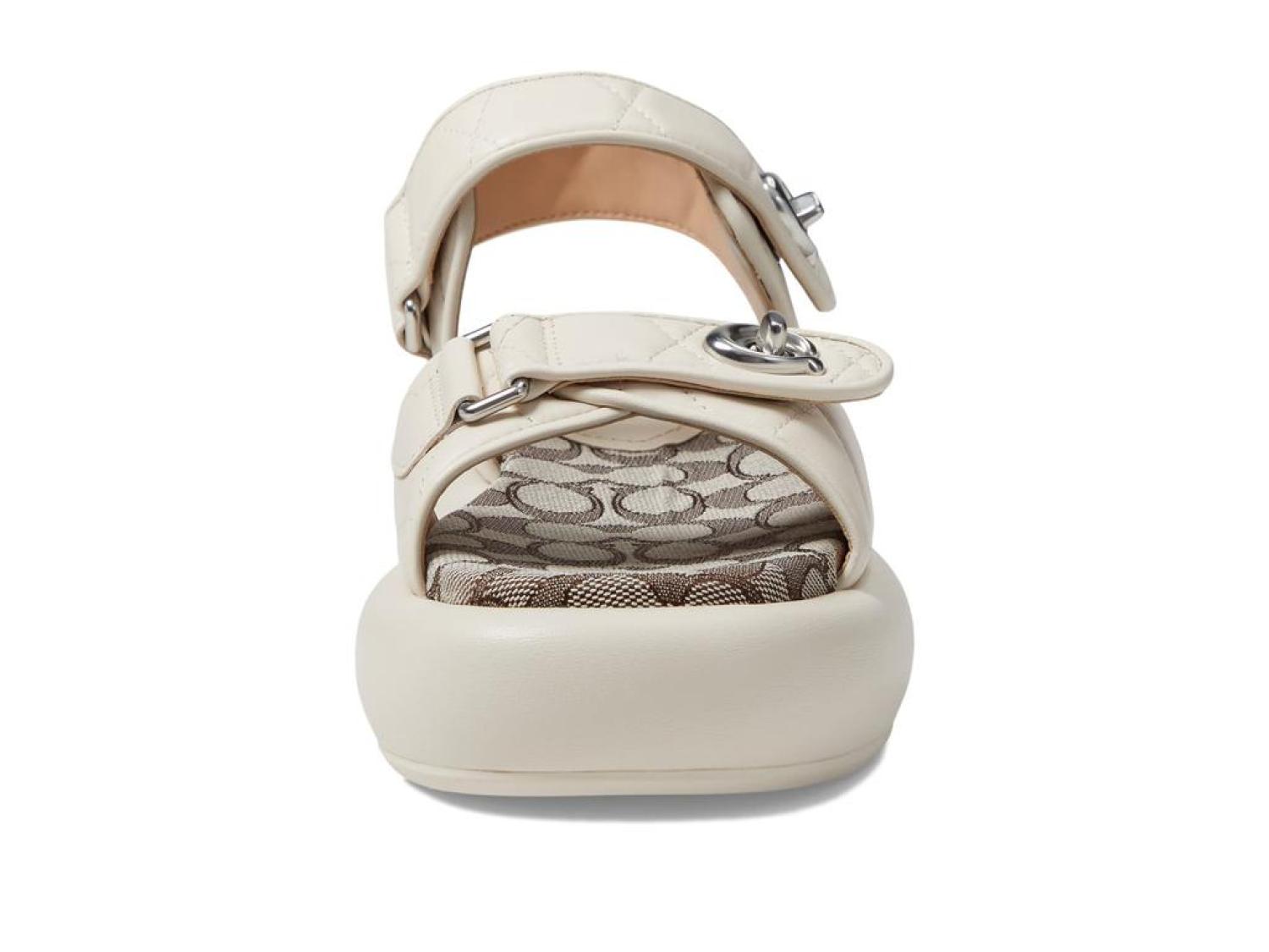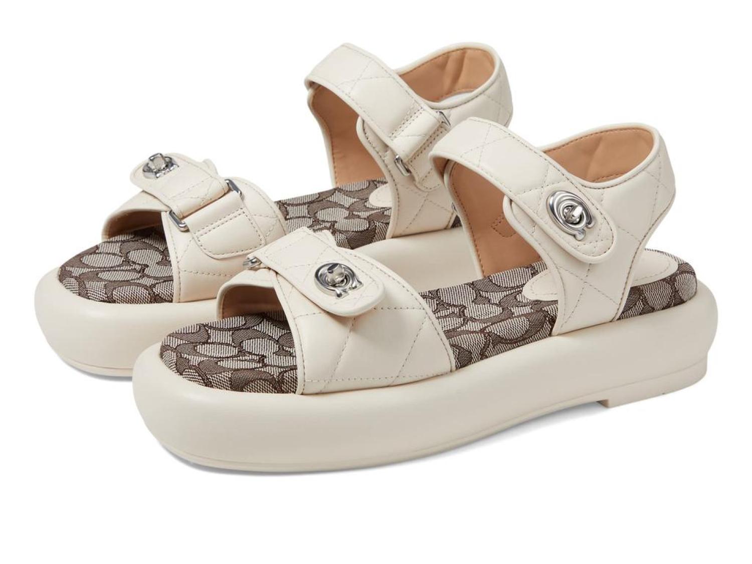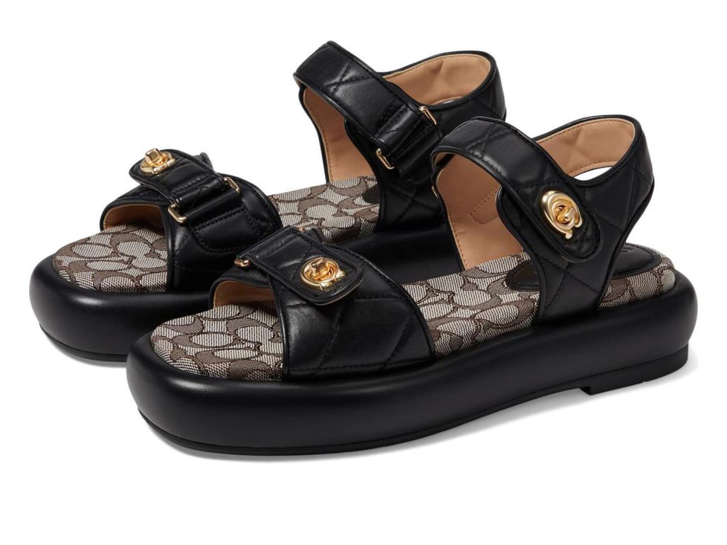 Please Note: COACH™ items cannot be shipped to military addresses (APO or FPO) and addresses in Hawaii, the Virgin Islands, Guam or any other locations outside of the continental US. Let your feet breath in style and comfort wearing the COACH® Peyton Leather Sandal. Leather upper. Man-made leather lining. Signature jacquard footbed. Signature turnlocks closure for a heritage touch. Two-strap style. Open round toe. Rubber outsole. Imported.