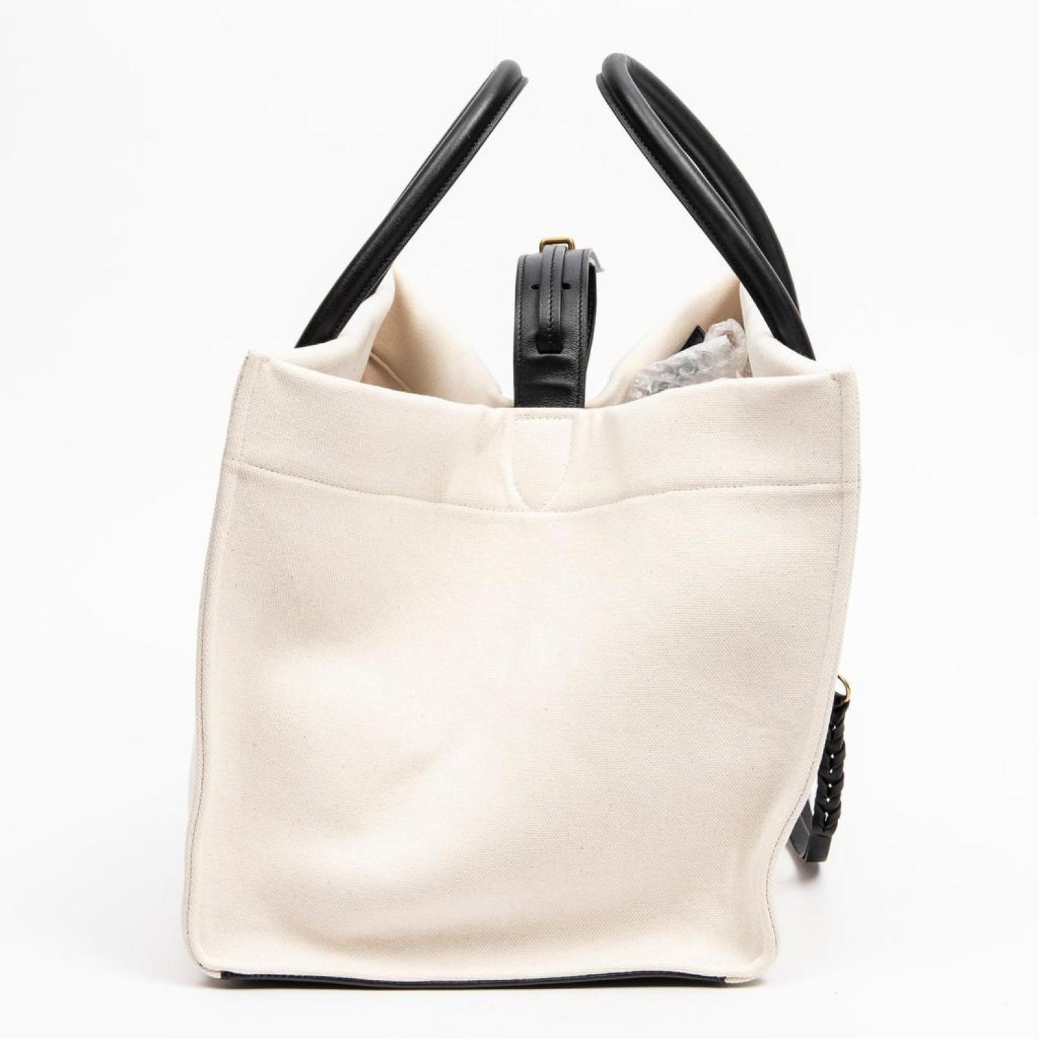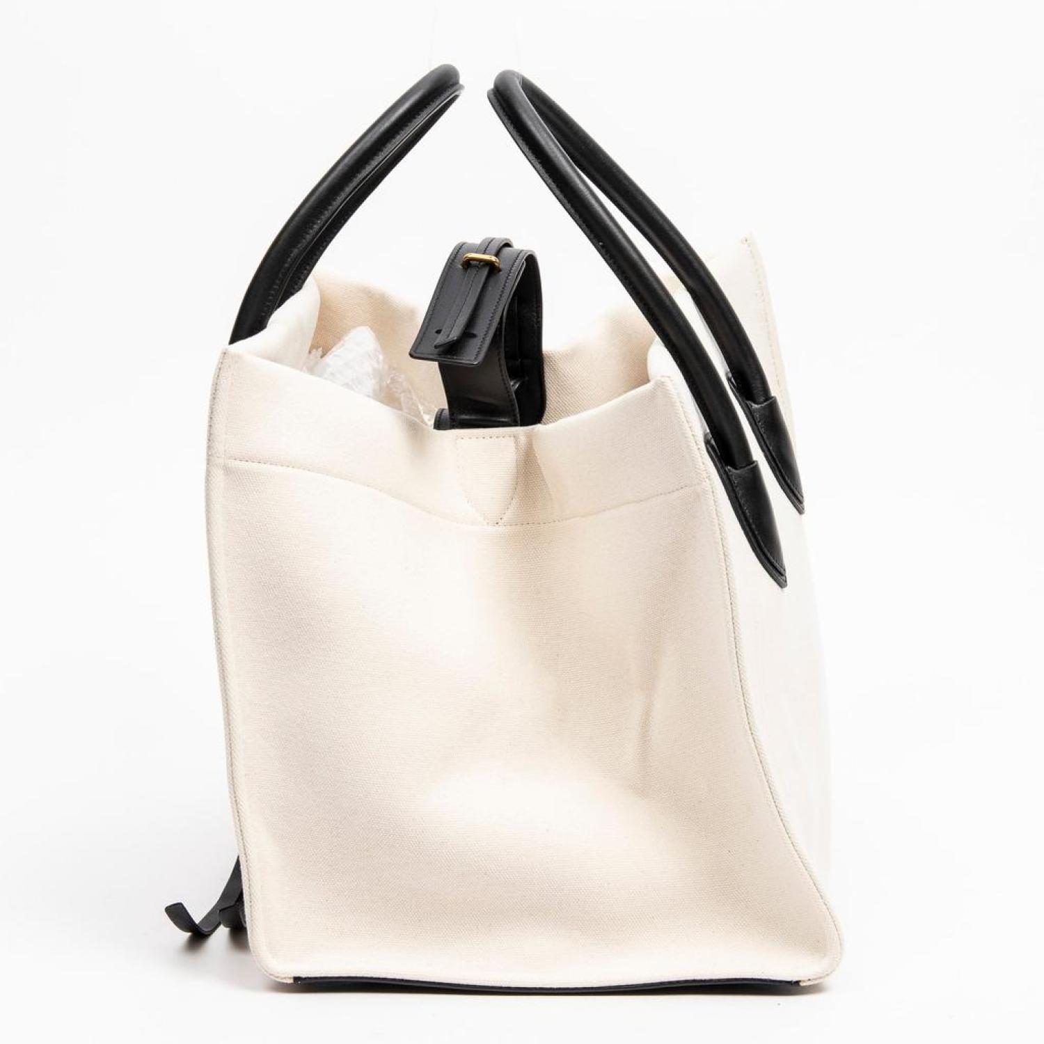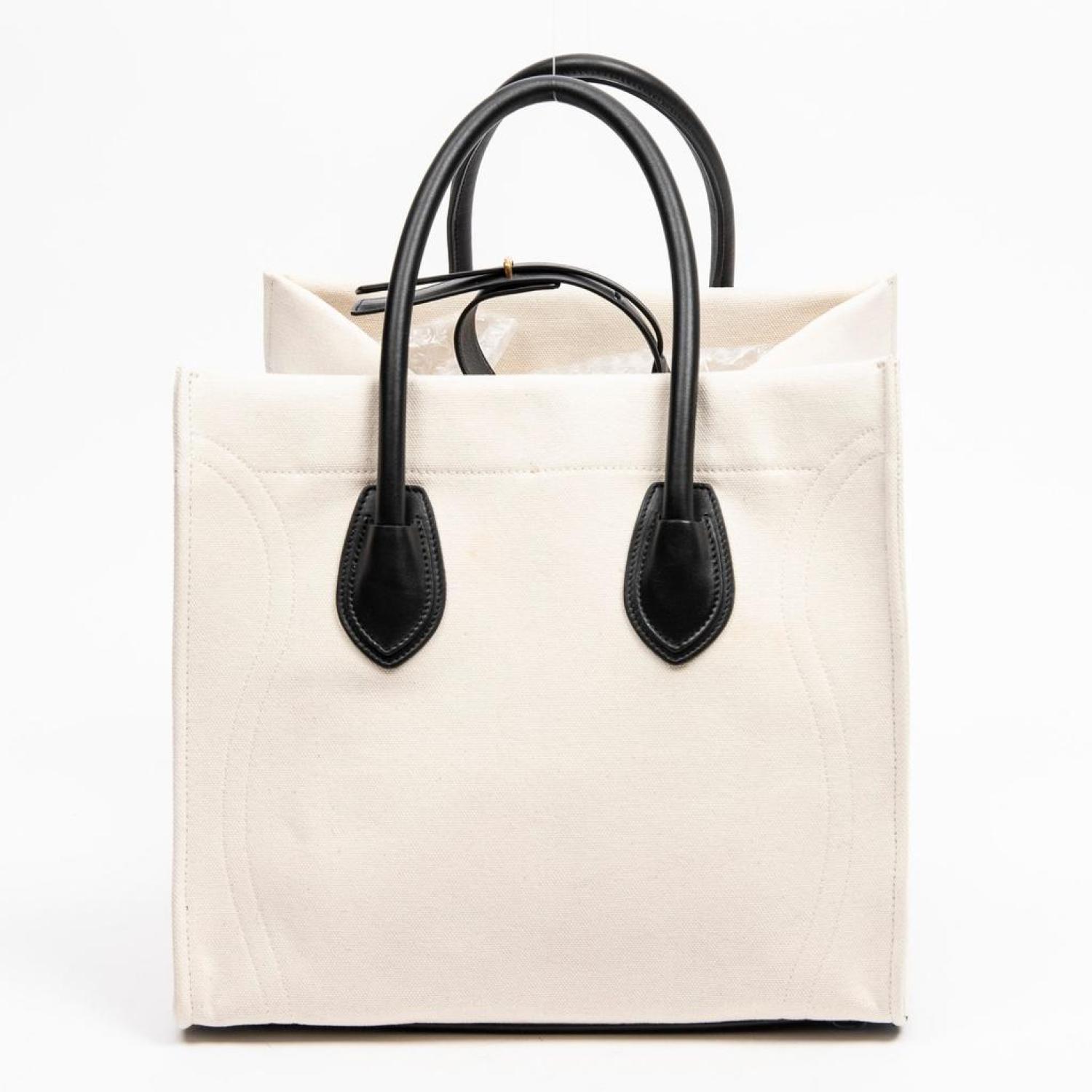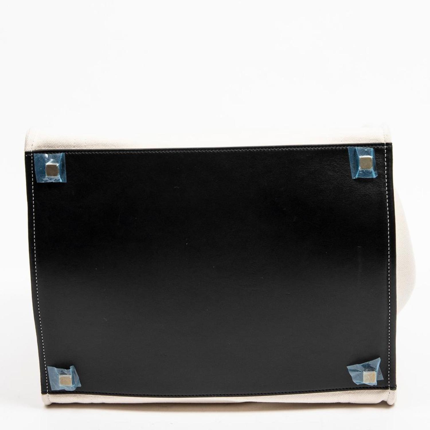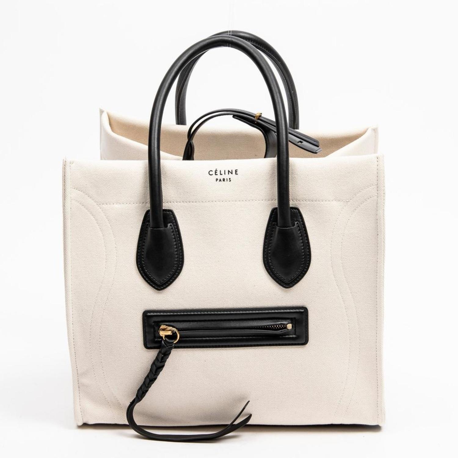 • Céline Handbag in Beige/Black Canvas and Gold hardware. Dimensions - 30*27*24cm. Serial number - F-LA-1136. Inclusions - None.