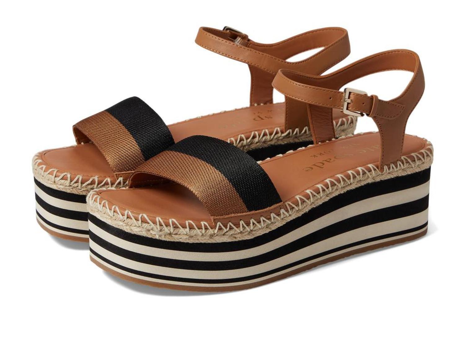 Highlighting a beautiful mix of colors and patterns, the Kate Spade New York® Picnic Platform Heels are a statement-making creation for your warm weather gatherings or parties. Leather and textile upper. Leather lining and insole. Buckled closure on the ankle strap. Open toe design. Comfy platform wedge construction. Rubber outsole. Imported. Product measurements were taken using size 9, width B - Medium. Please note that measurements may vary by size. Measurements: Heel Height: 2 1/2 in Weight: 13 oz Platform Height: 2 in-