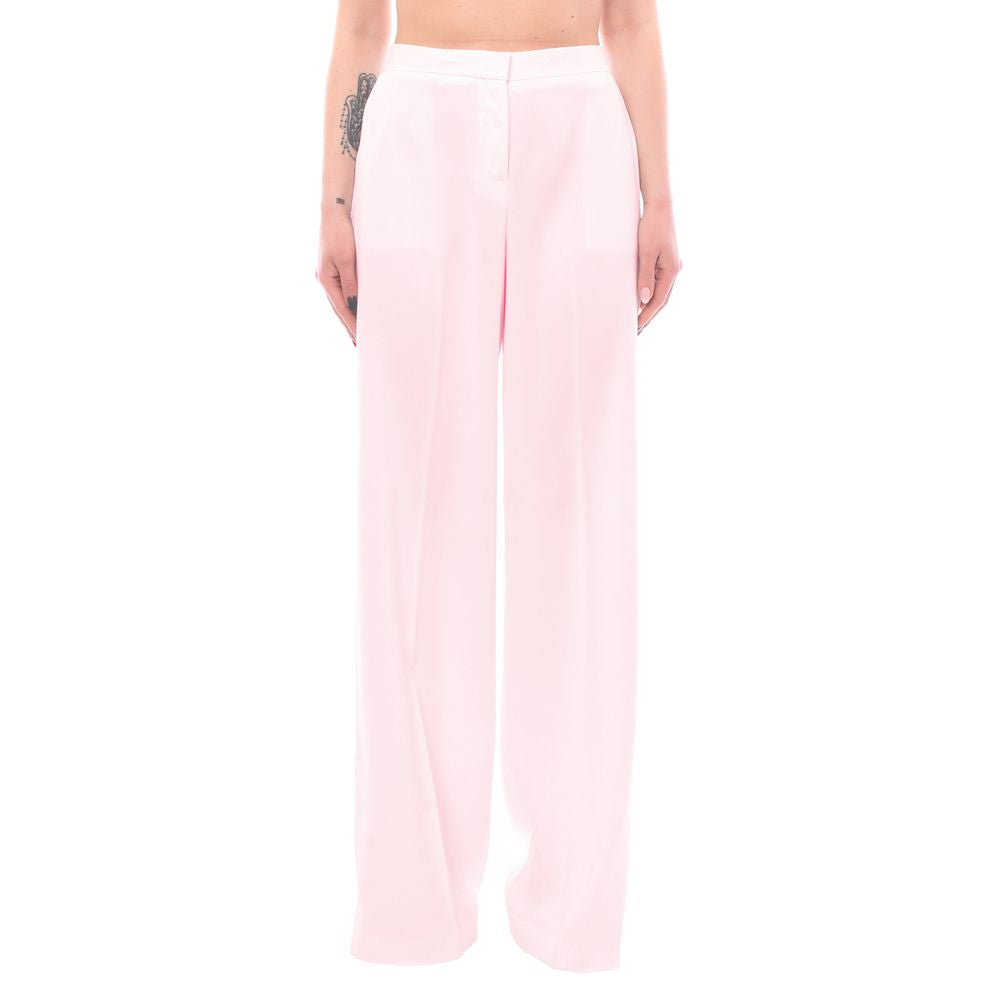 Pinko wide leg pants in lightweight stretch crepe fabric. Regular waist with French pockets on the hips and welt pockets on the back, wide-leg palazzo style. Zipper closure.