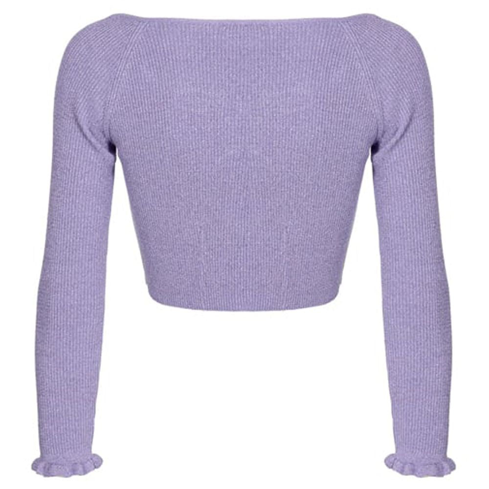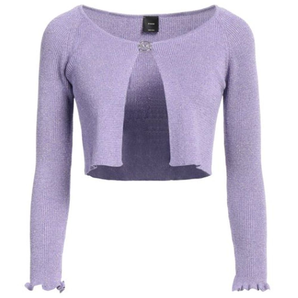 • Pinko short cardigan in ribbed lurex fabric, crew neck, sleeves with gathered cuffs