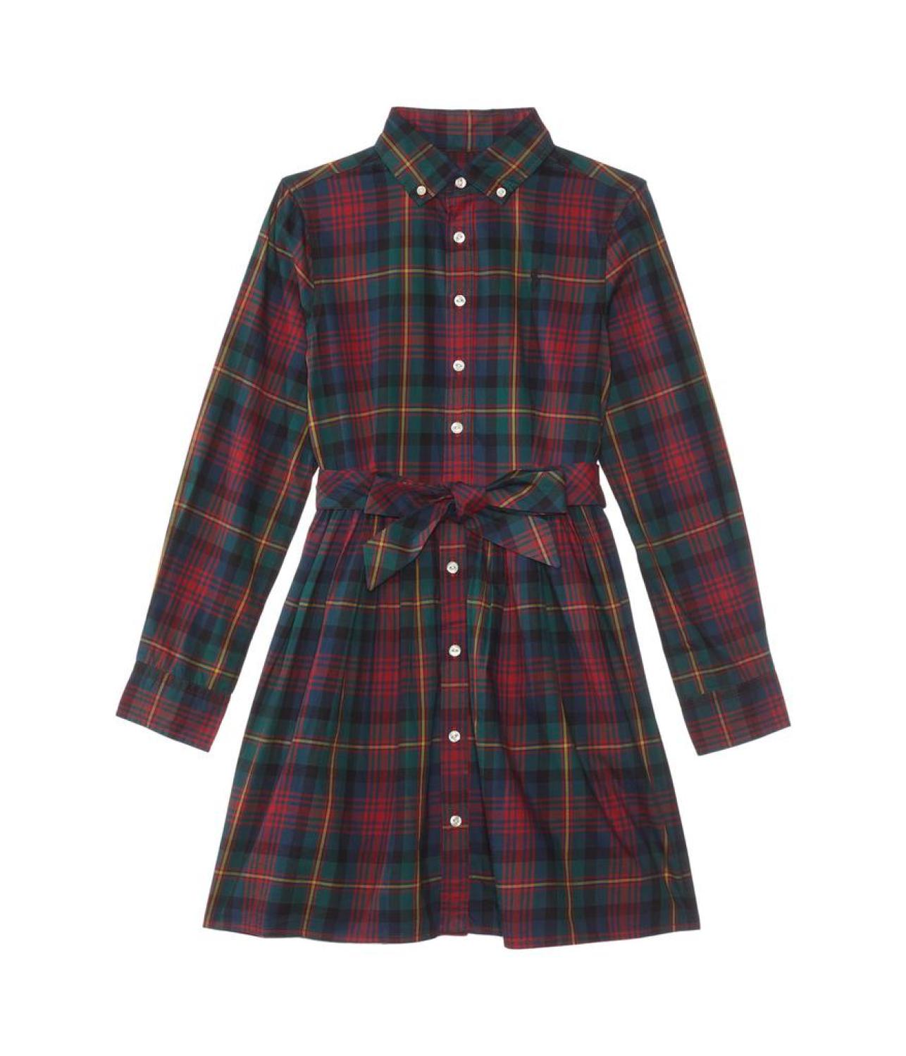 Let your kid have super stylish and sophisticated look donning the Polo Ralph Lauren® Kids Plaid Cotton Twill Shirtdress. This fit-and-flare shirtdress features buttoned front closure, allover checkered print, and shirred long sleeves with buttoned cuffs. Collared neckline. Removable self-tie sash at waistline. Signature embroidered logo on the left chest. Two side slit pockets. 100% cotton. Machine washable. Imported.