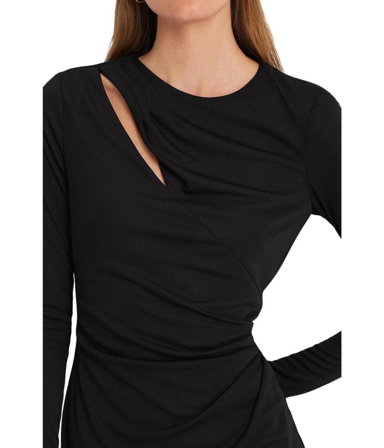 Sleek and stylish, the LAUREN Ralph Lauren® Pleated Stretch Jersey Cocktail Dress is perfect to add elegance to your look effortlessly. The dress features a round neckline, long sleeves, a cutout at the right shoulder, and a concealed center back zipper with a hook-and-eye closure. It boasts elegant pleats that enhance the form-fitting silhouette.