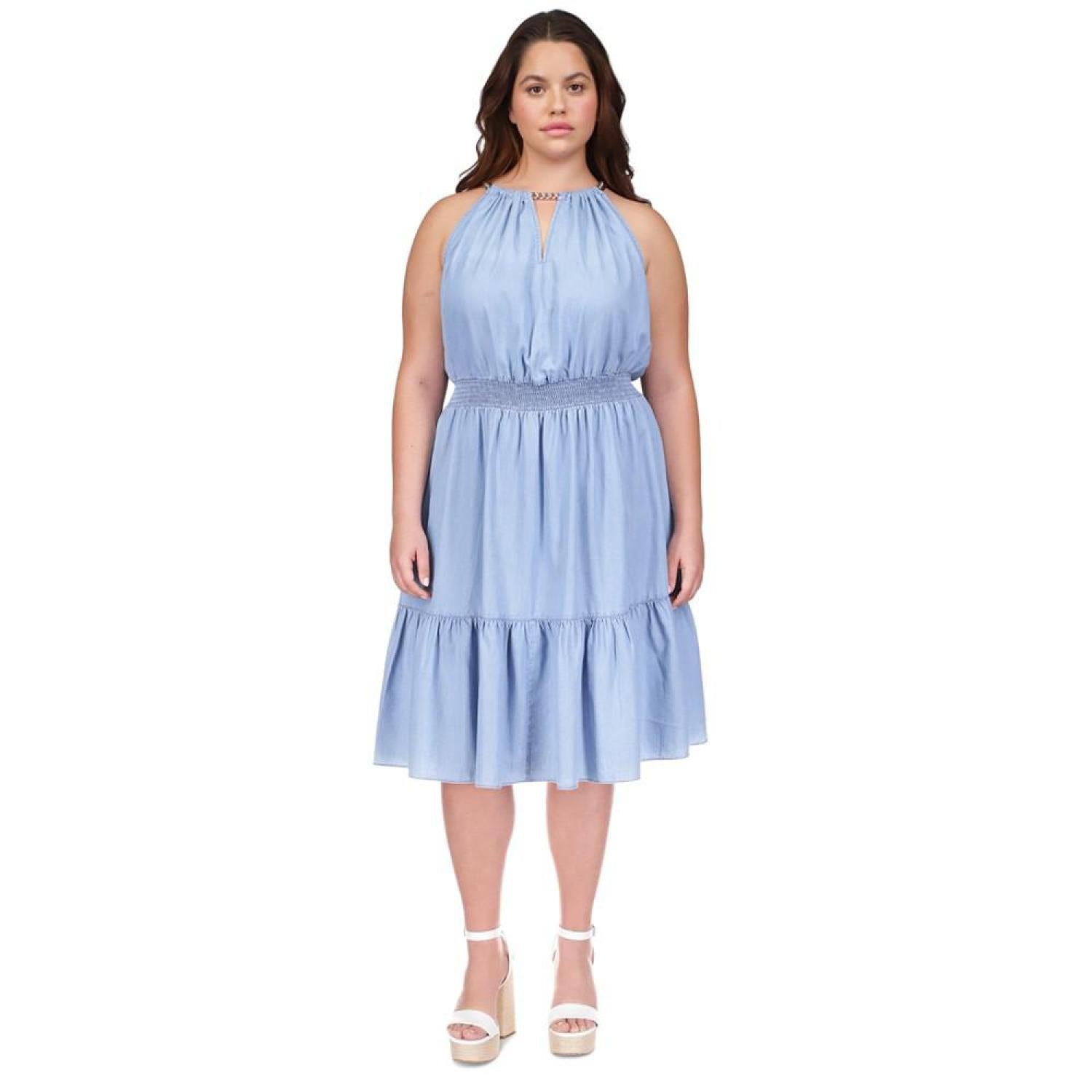 Add bold elegance to your dress collection with this plus size dress from MICHAEL Michael Kors, featured with a smocked waist for a figure flattering finish.
