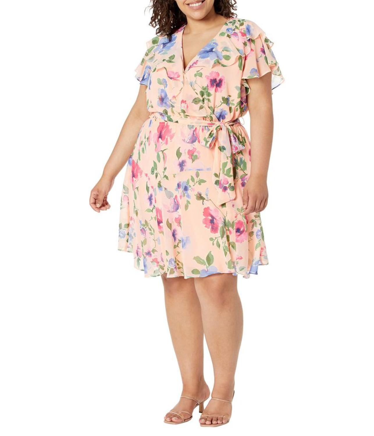 • Exude a graceful vibe everywhere you go wearing LAUREN Ralph Lauren® Plus Size Floral Belted Crinkle Georgette Dress.