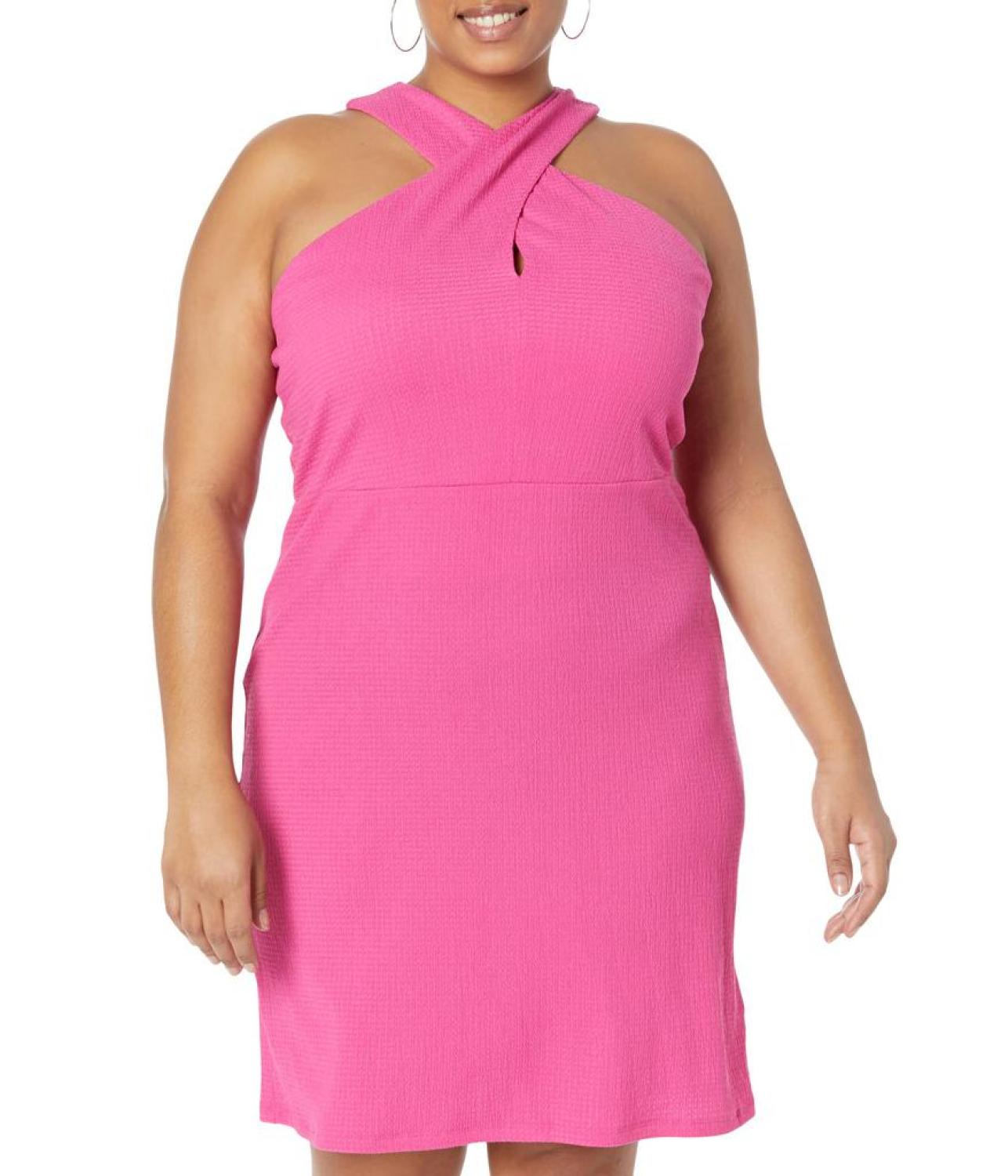 • Get ready to have fun with your friends and enjoy your good time wearing the MICHAEL Michael Kors® Plus Size Solid Crisscross Mini Dress.