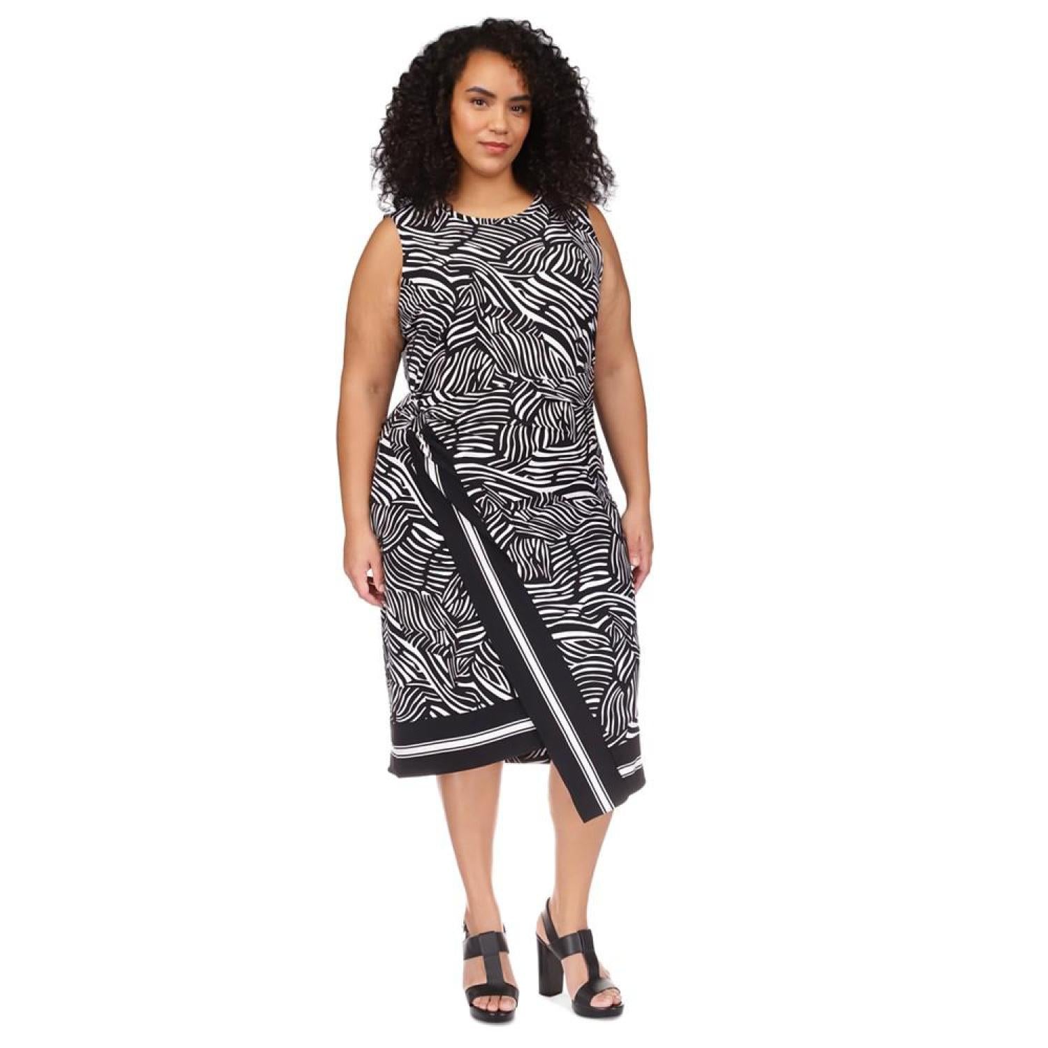 Plus Size Zebra-Print Faux Wrap Midi dress
