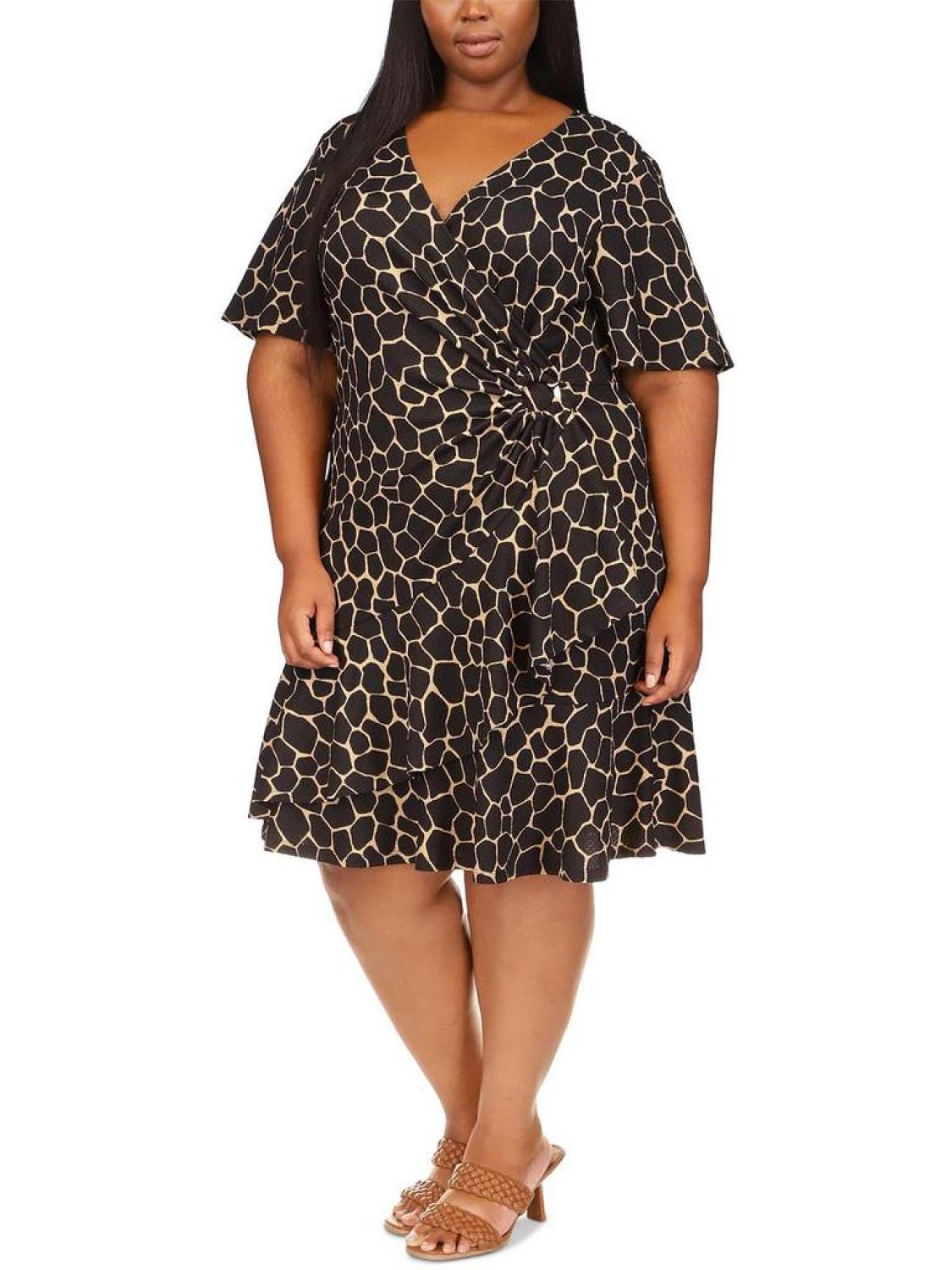 Plus Womens Faux Wrap Knee-Length Mini Dress