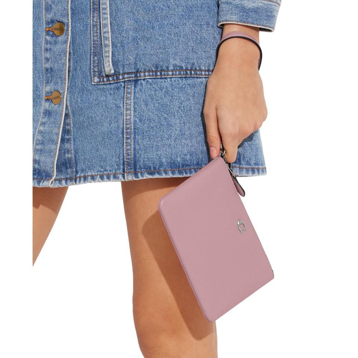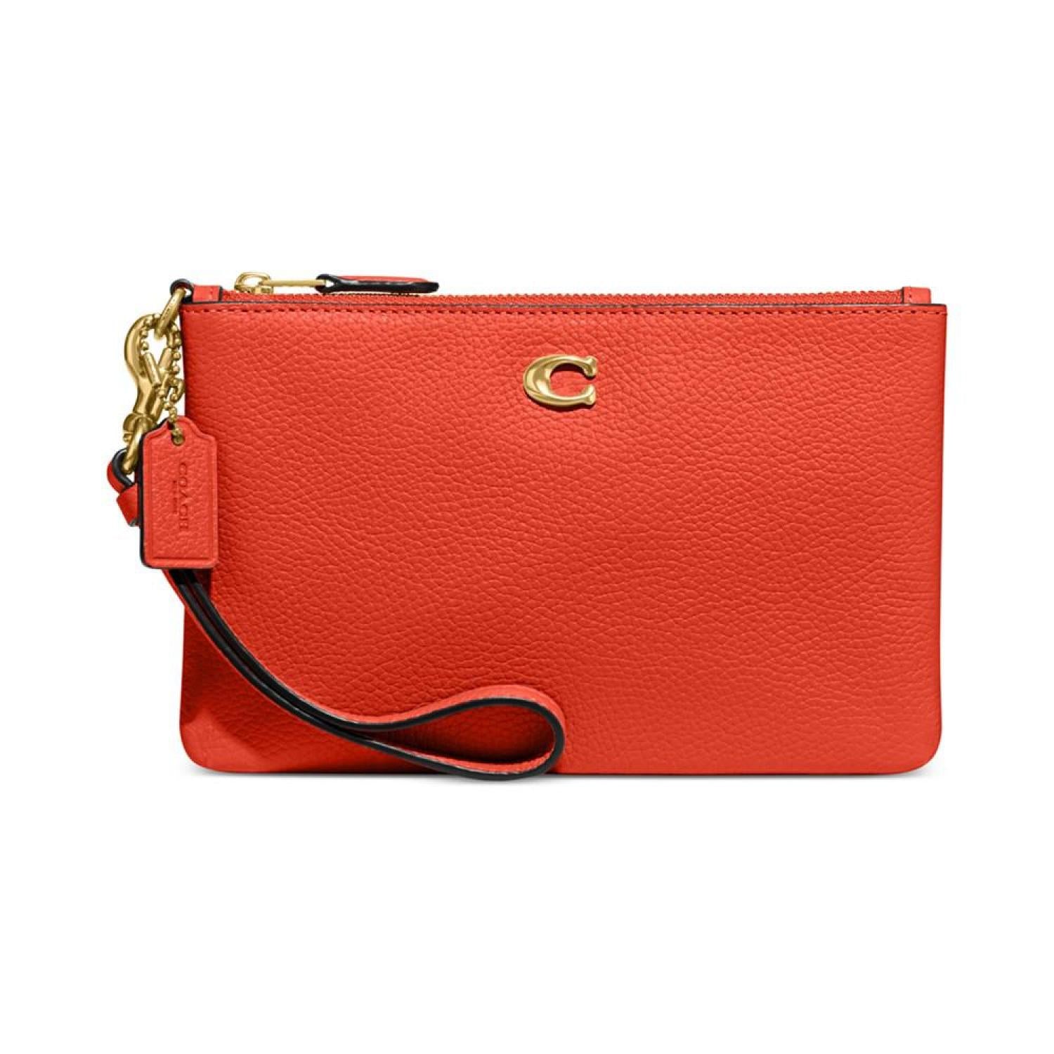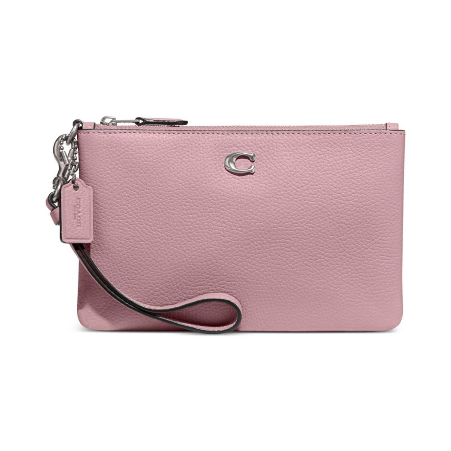 • Streamlined and sophisticated, this Polished Pebble Leather Small Zip-Top Wristlet by COACH is the perfect way to stay organized.