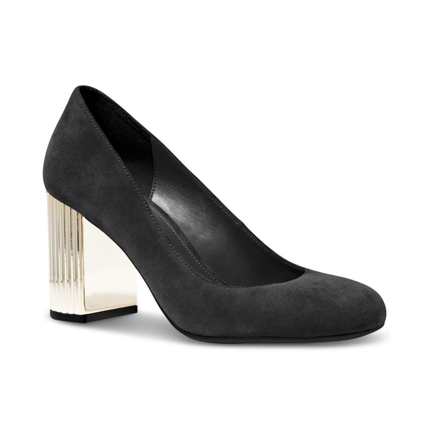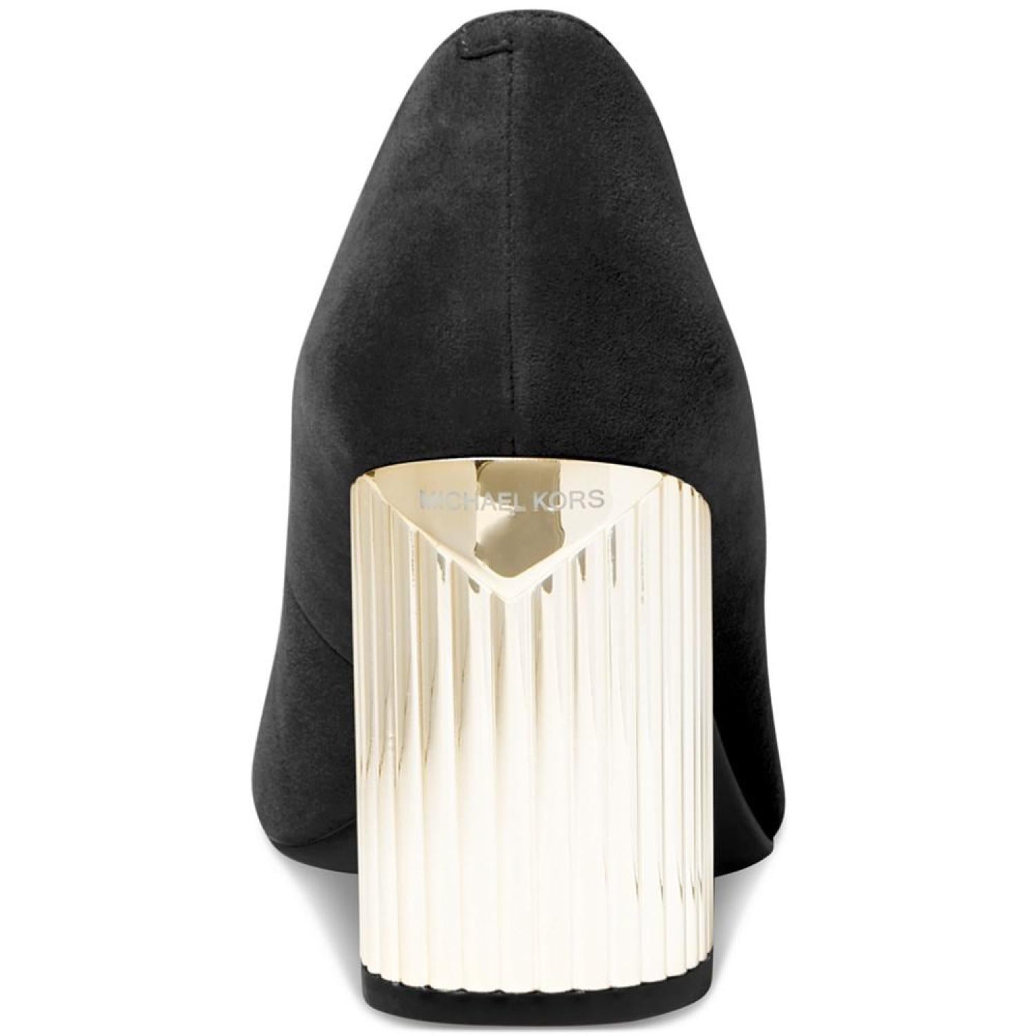 • Propped on galvanized heels, the Porter pumps from MICHAEL Michael Kors bring modern flash to a dressy lift.