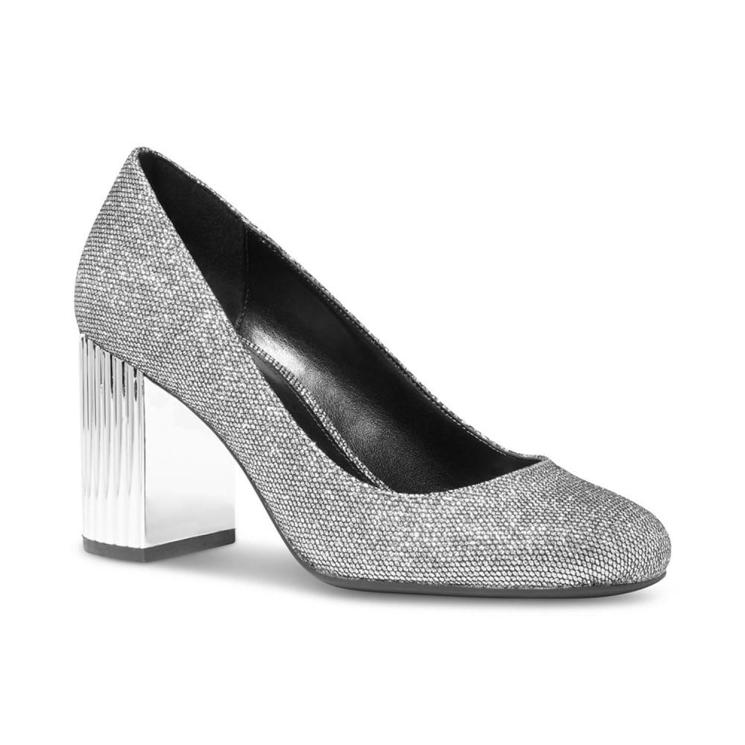 Propped on galvanized heels, the Porter pumps from MICHAEL Michael Kors bring modern flash to a dressy lift. 3" heel Round toe Slip on Suede or manmade uppers; manmade lining; rubber sole Imported