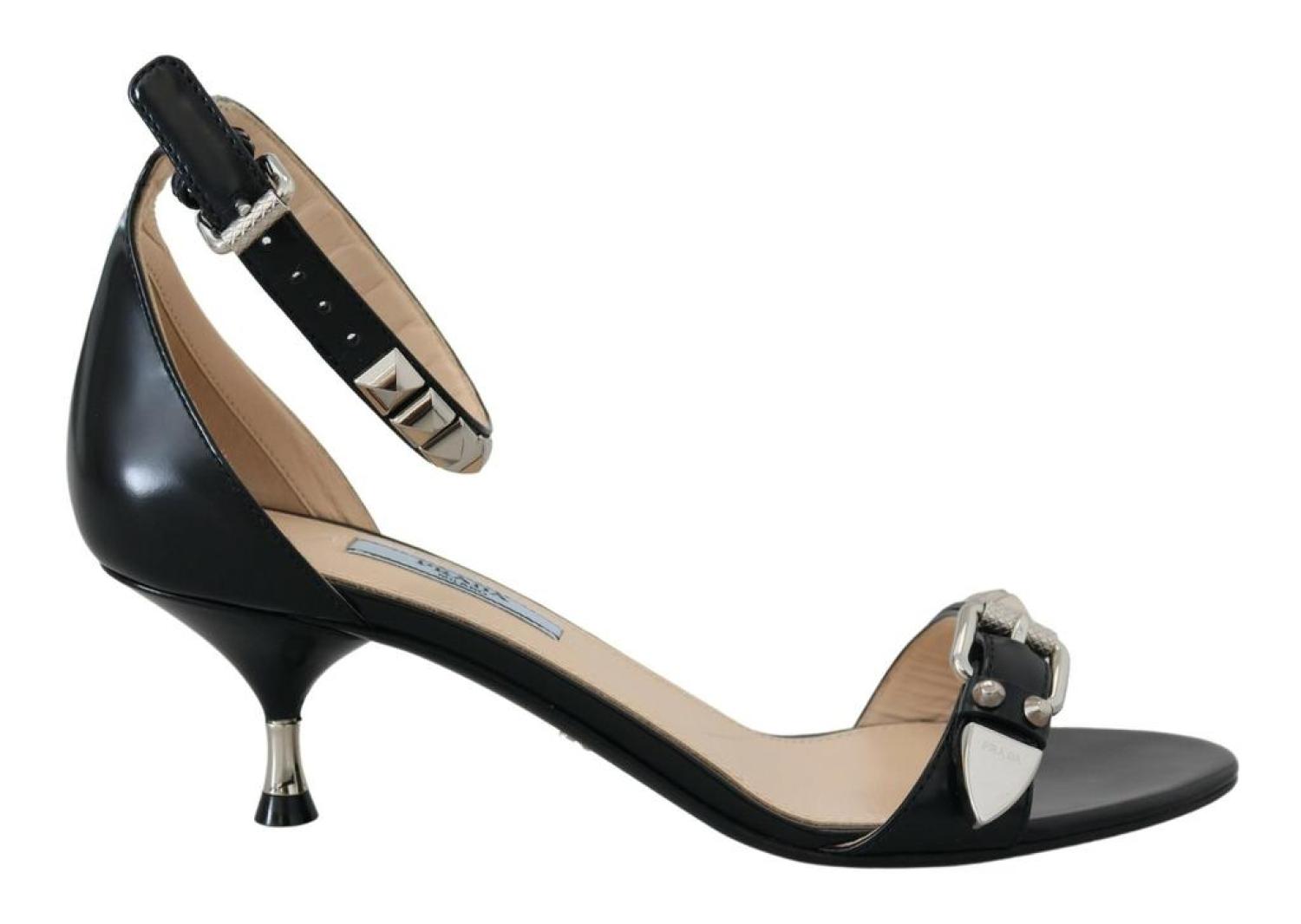 Prada Leather Sandals Ankle Strap Heels Studded Women's Shoes