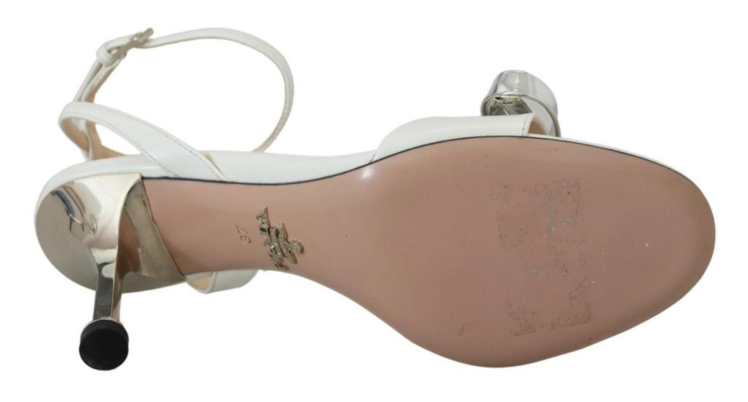 • PRADAGorgeous brand new with tags, 100% Authentic PRADA ankle strap heels shoes.Model - Heels sandalsColor - Silver, WhiteLeather bottom soleLogo detailsMade in ItalyVery exclusive and high craftsmanshipMaterial - 100% Leather