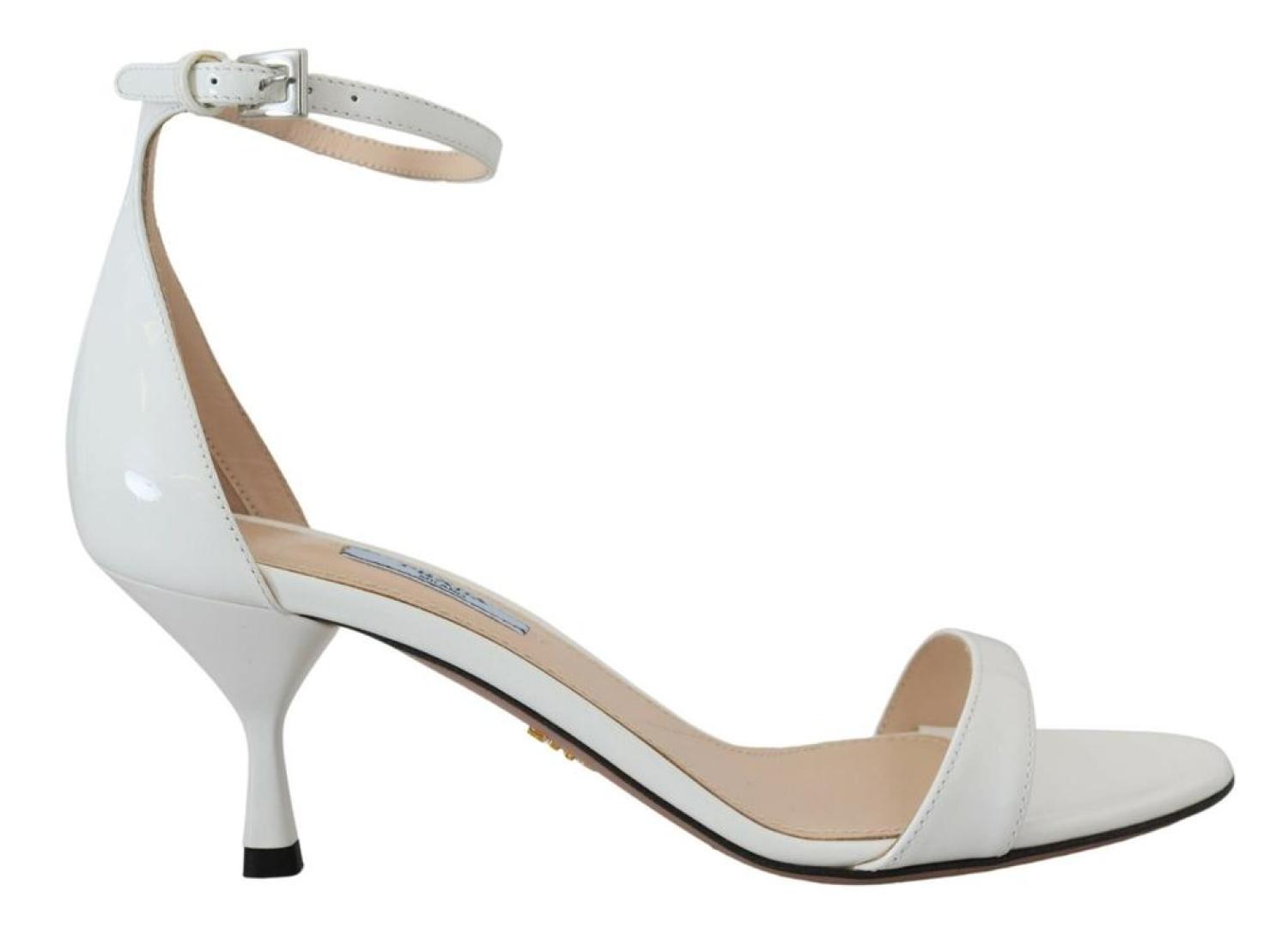 PRADAGorgeous brand new with tags, 100% Authentic PRADA ankle strap shoes.Model - Heels sandalsColor - WhiteLeather bottom soleLogo detailsMade in ItalyVery exclusive and high craftsmanshipMaterial - 100% Leather