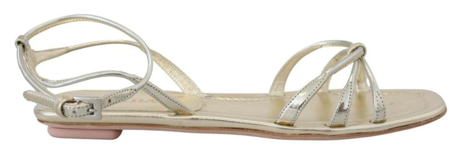 Prada Metallic Leather Sandals Ankle Strap Flats Women's Shoes