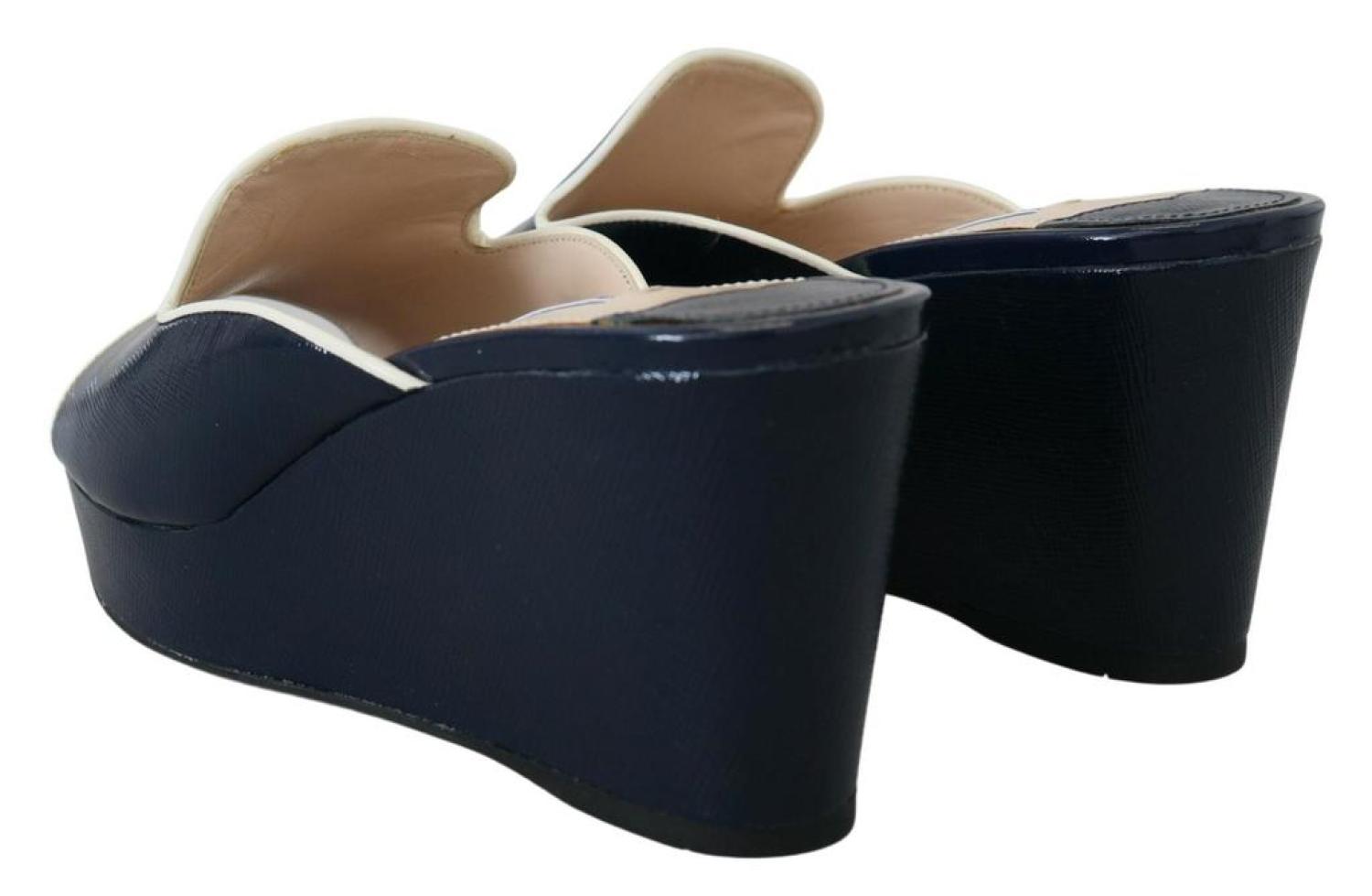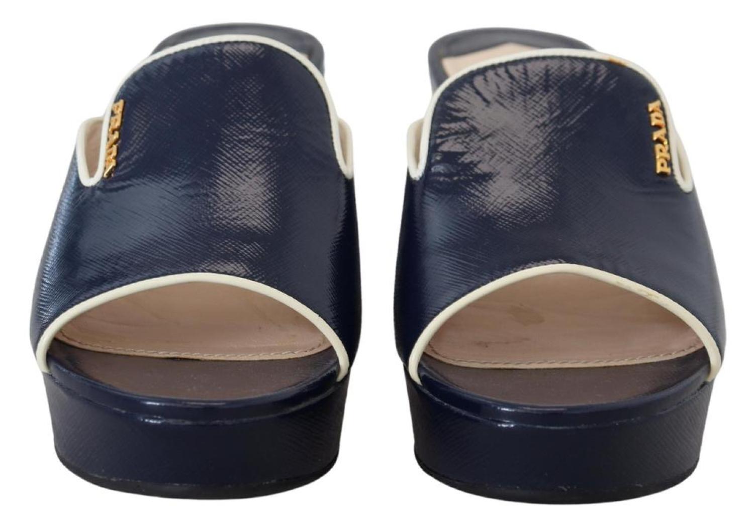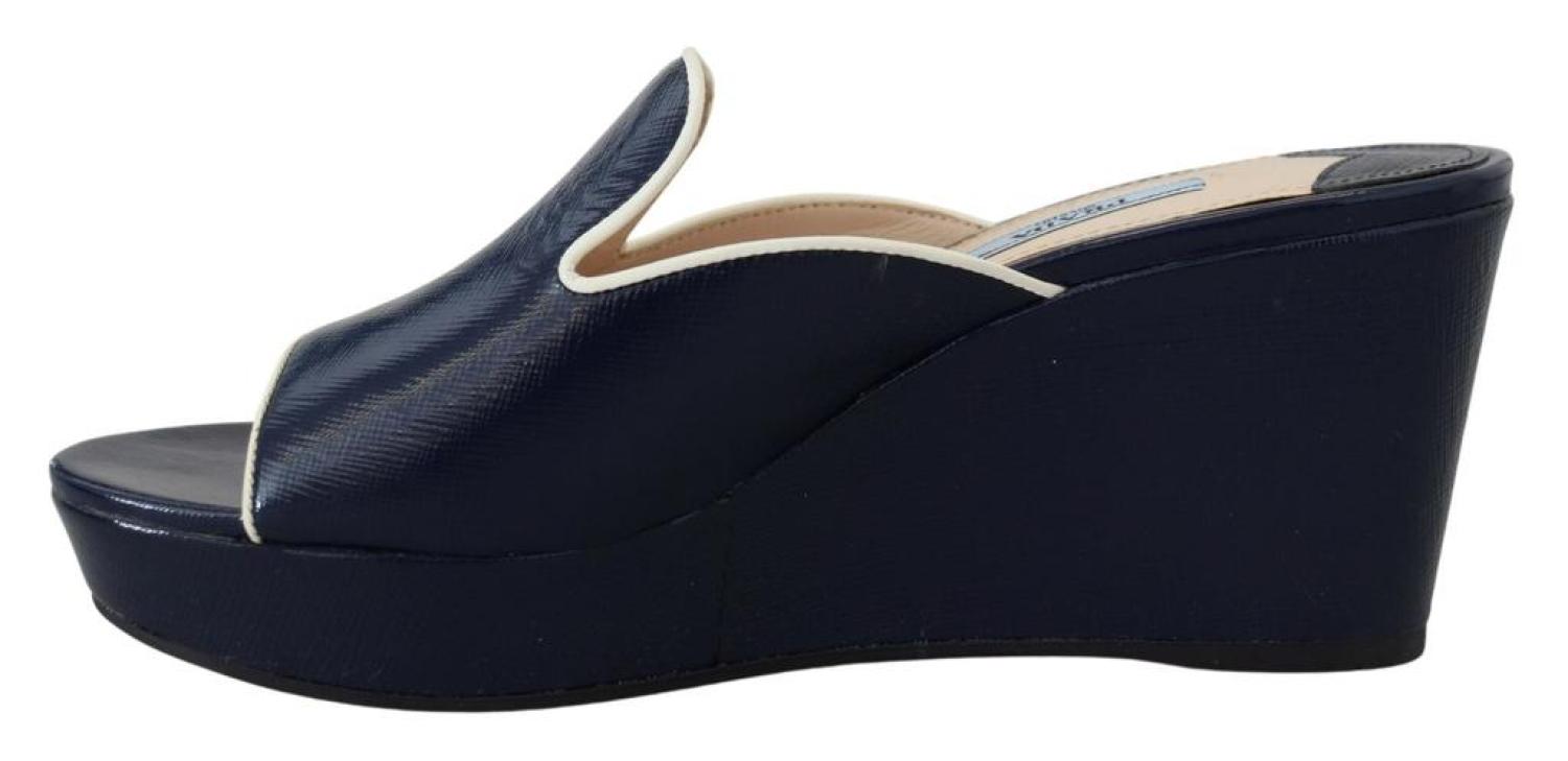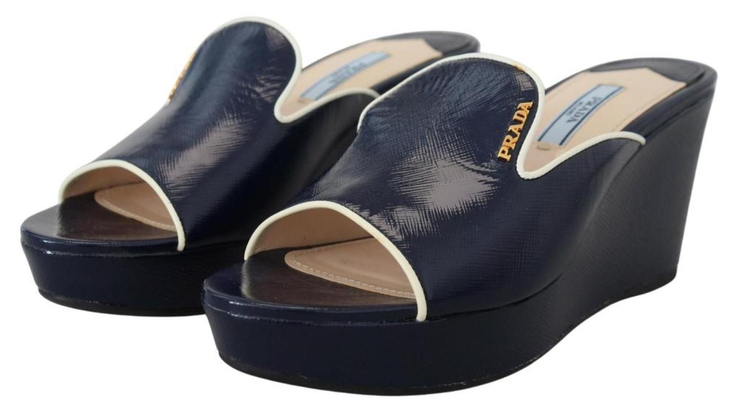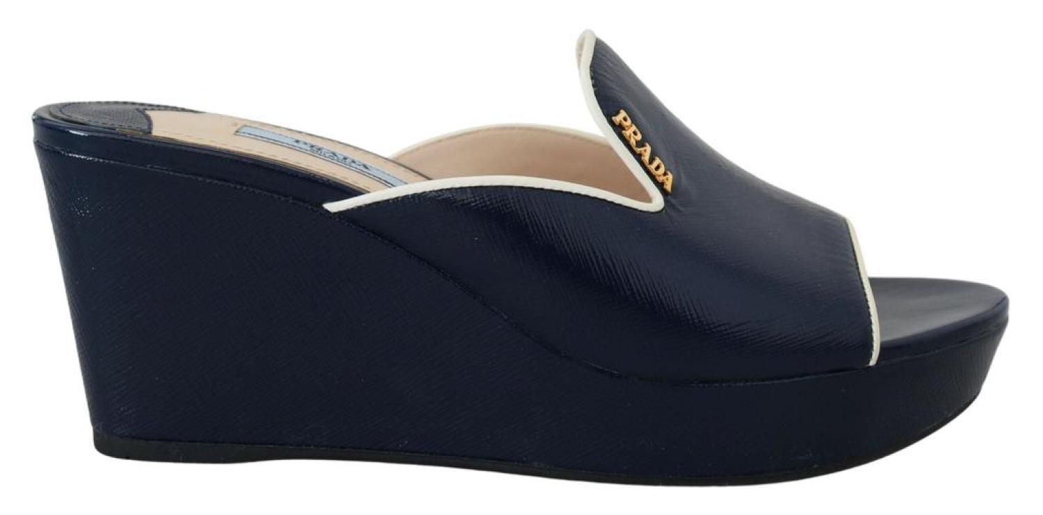 Prada Royal Wedges Sandals Slip On Leather Women's Shoes