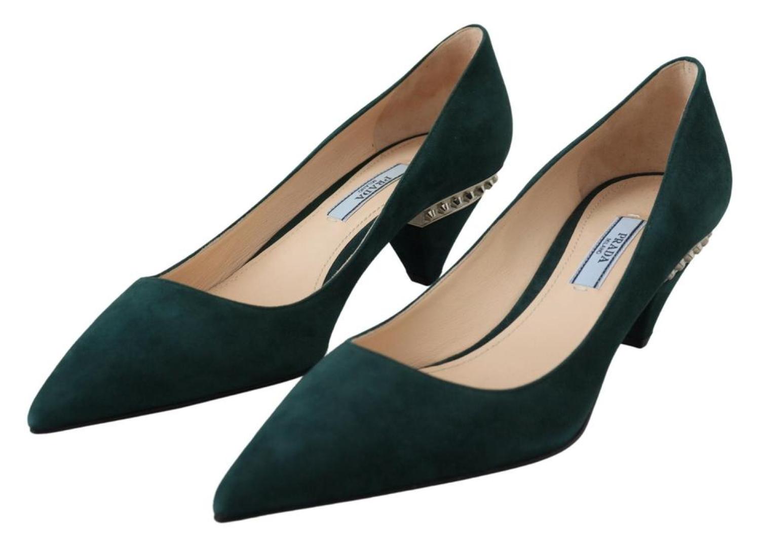 PRADAGorgeous brand new with tags, 100% Authentic PRADA heels pumps shoes.Model - Heels pumpsColor - GreenLeather bottom soleLogo detailsMade in ItalyVery exclusive and high craftsmanshipMaterial - 100% Suede Leather