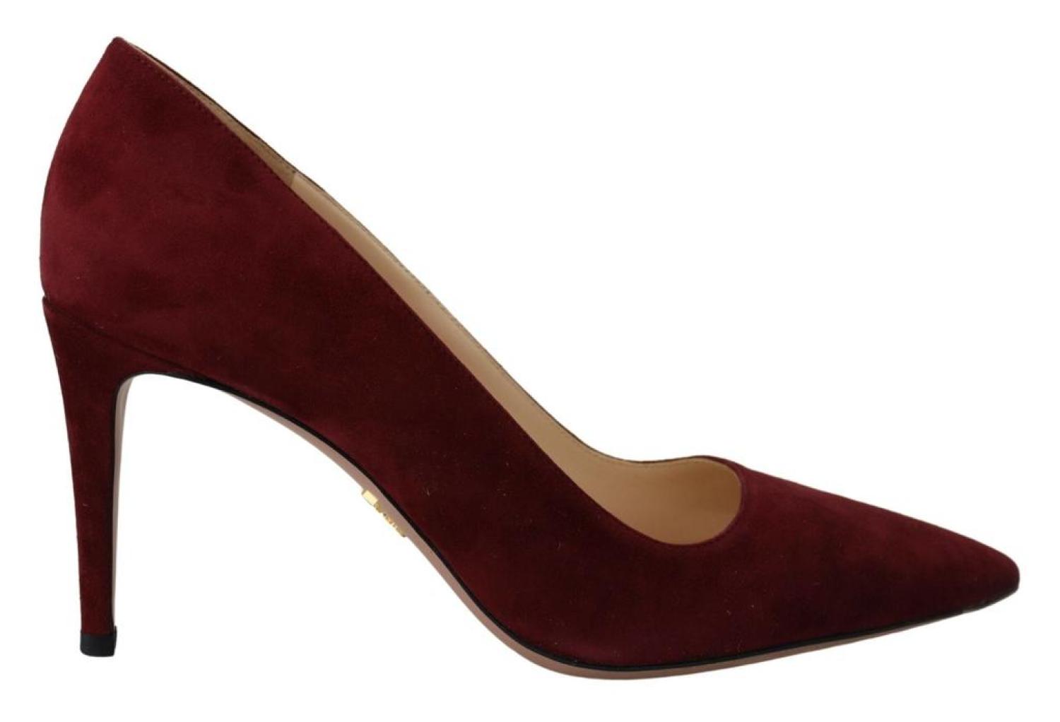 PRADAGorgeous brand new with tags, 100% Authentic PRADA heels pumps shoes.Model - Heels pumpsColor - Dark RedLeather bottom soleLogo detailsMade in ItalyVery exclusive and high craftsmanshipMaterial - 100% Suede Leather