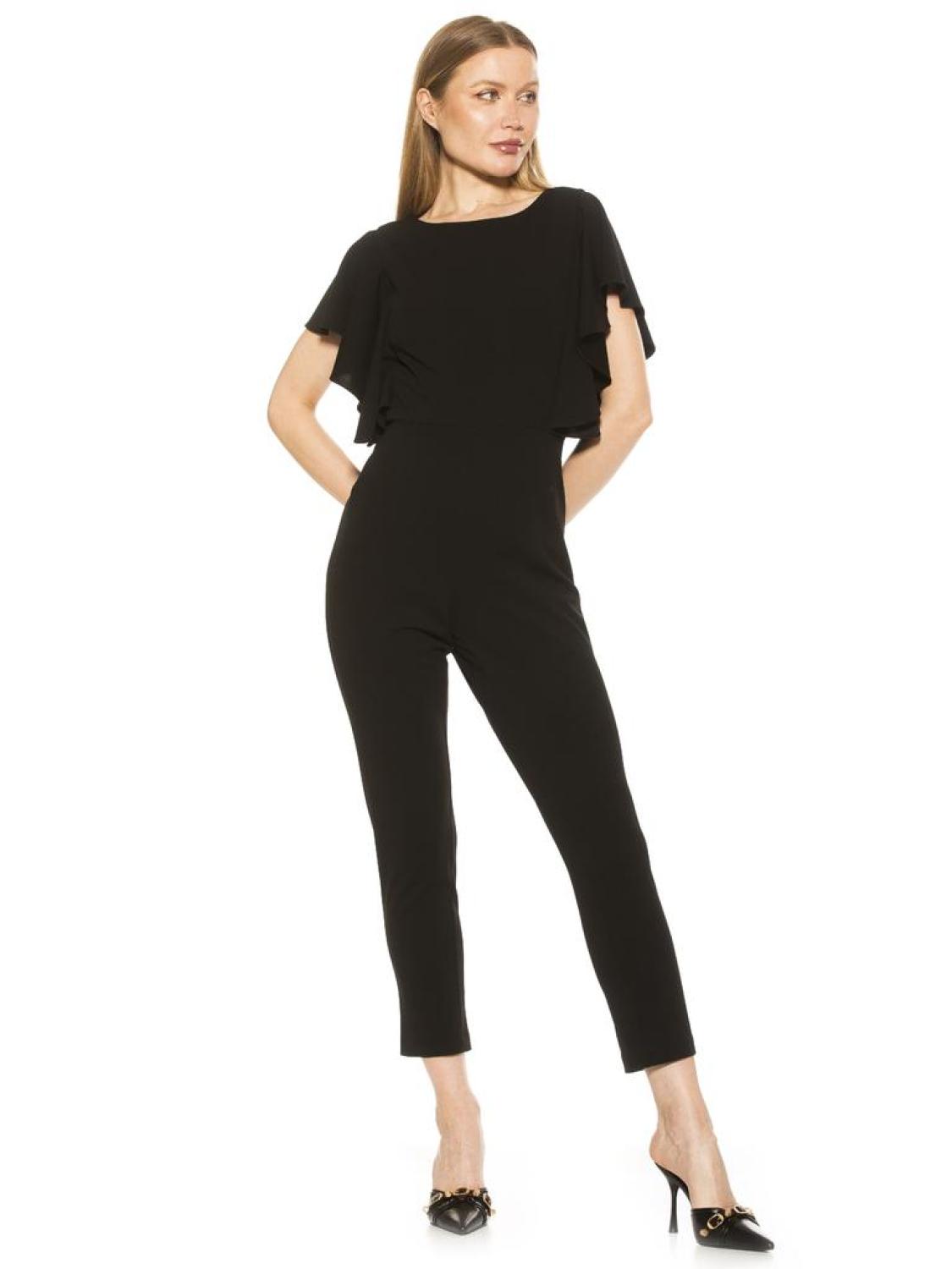 • The Priya Jumpsuit is an elegant ensemble, crafted for chic and effortless style. Its flutter sleeve and cigarette pants design creates a look with contemporary charm. The cropped pants makes it perfect for any special occasion or dressy weekend outing. PRODUCT FEATURES 95% Polyester, 5% Spandex Lining - 100% Polyester Machine Wash Imported Style D4058