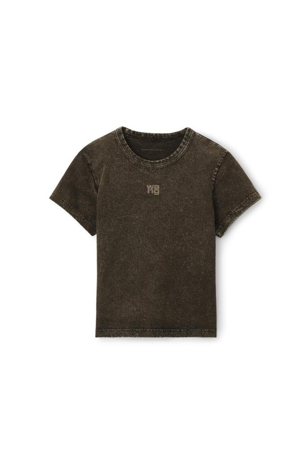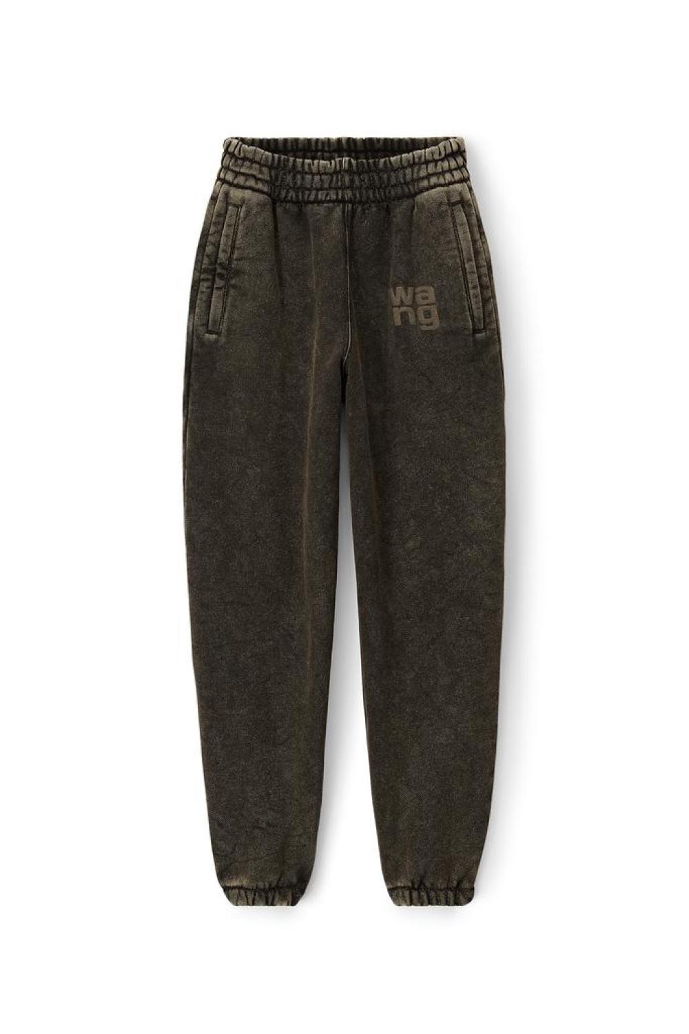 • Army green sweatpant in heavy weight brushed back terry with glitter wash and featuring puff print stacked "Wang" logo on left leg