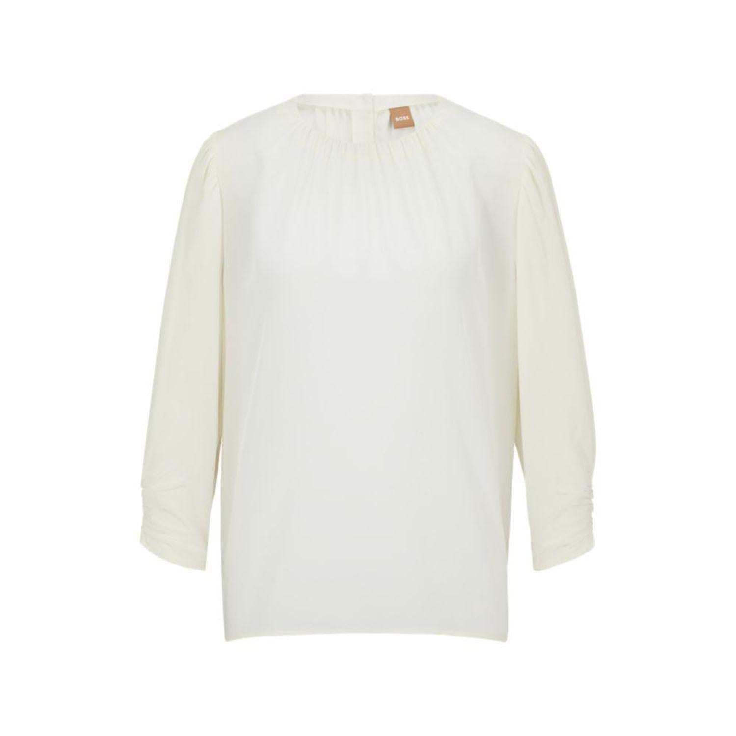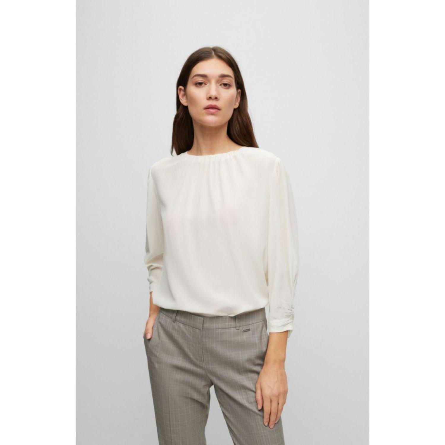 A regular-fit collarless blouse in soft washed silk with metal buttons at the rear by BOSS Womenswear.