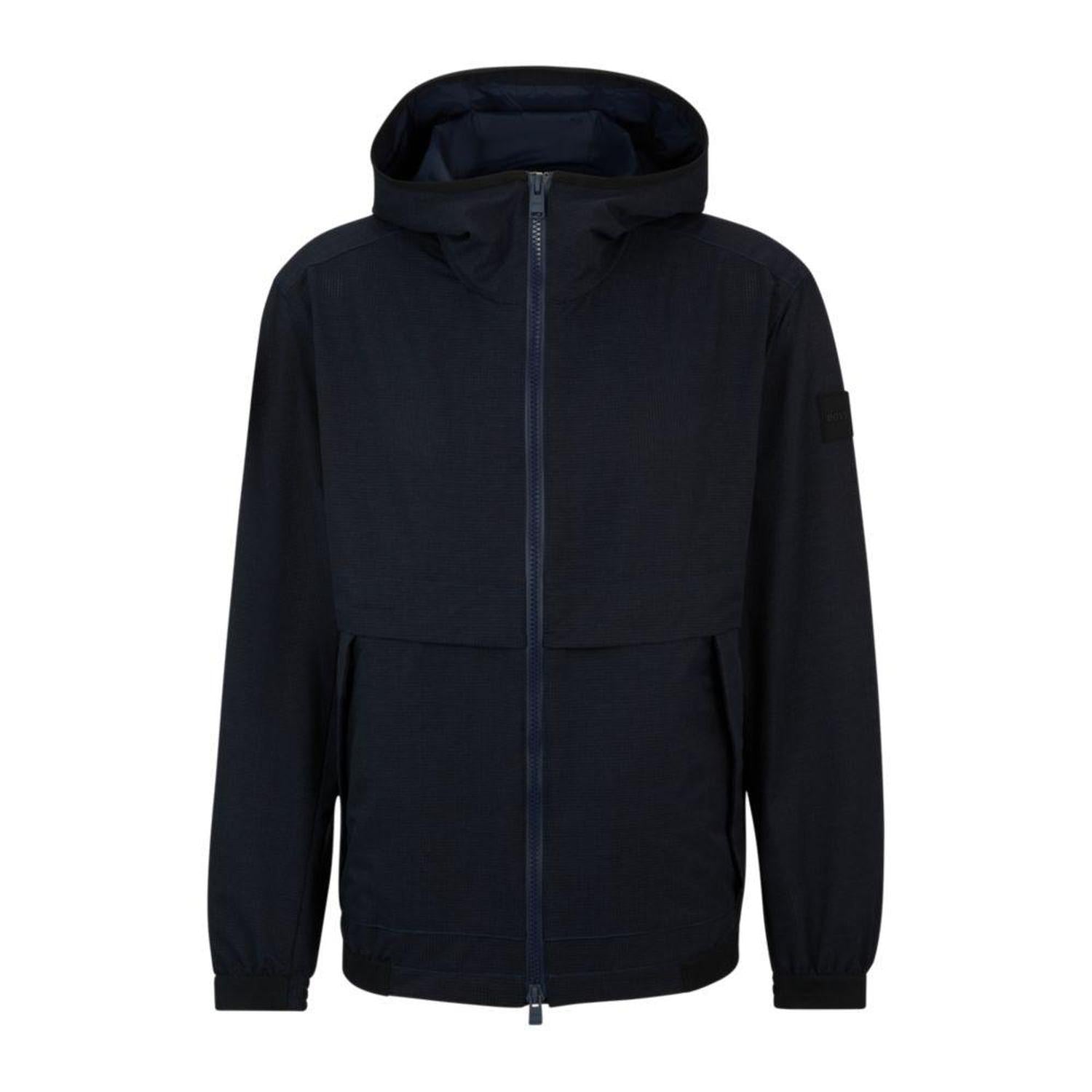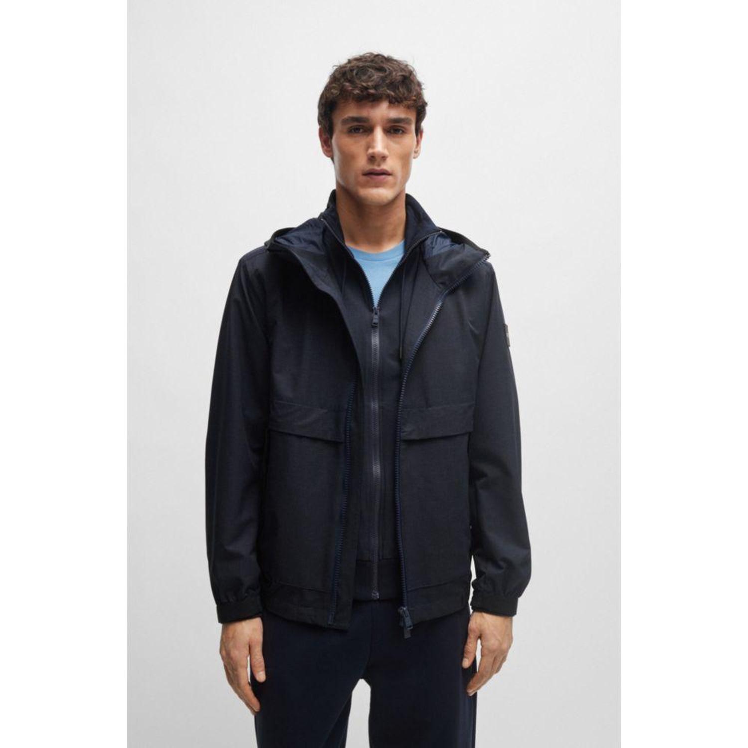 A washable hooded jacket by BOSS Menswear, cut to a straight fit in wrinkle-resistant air-mesh fabric with bi-stretch properties.