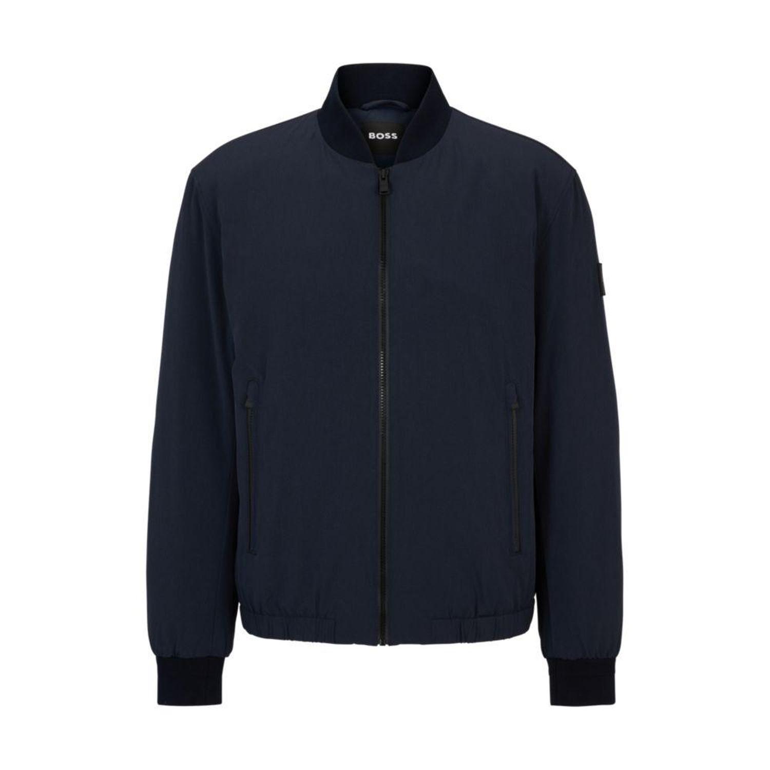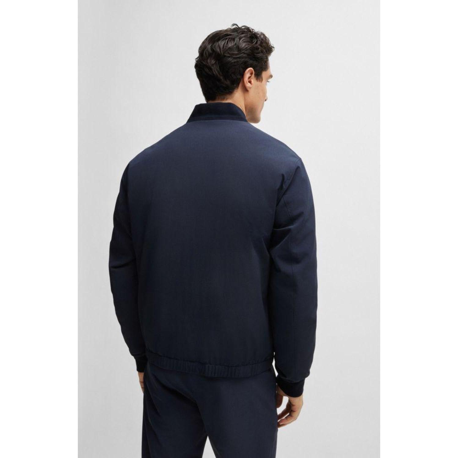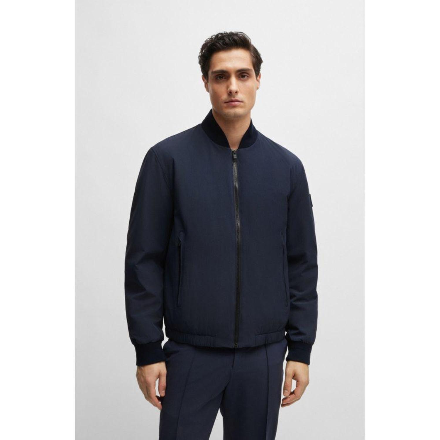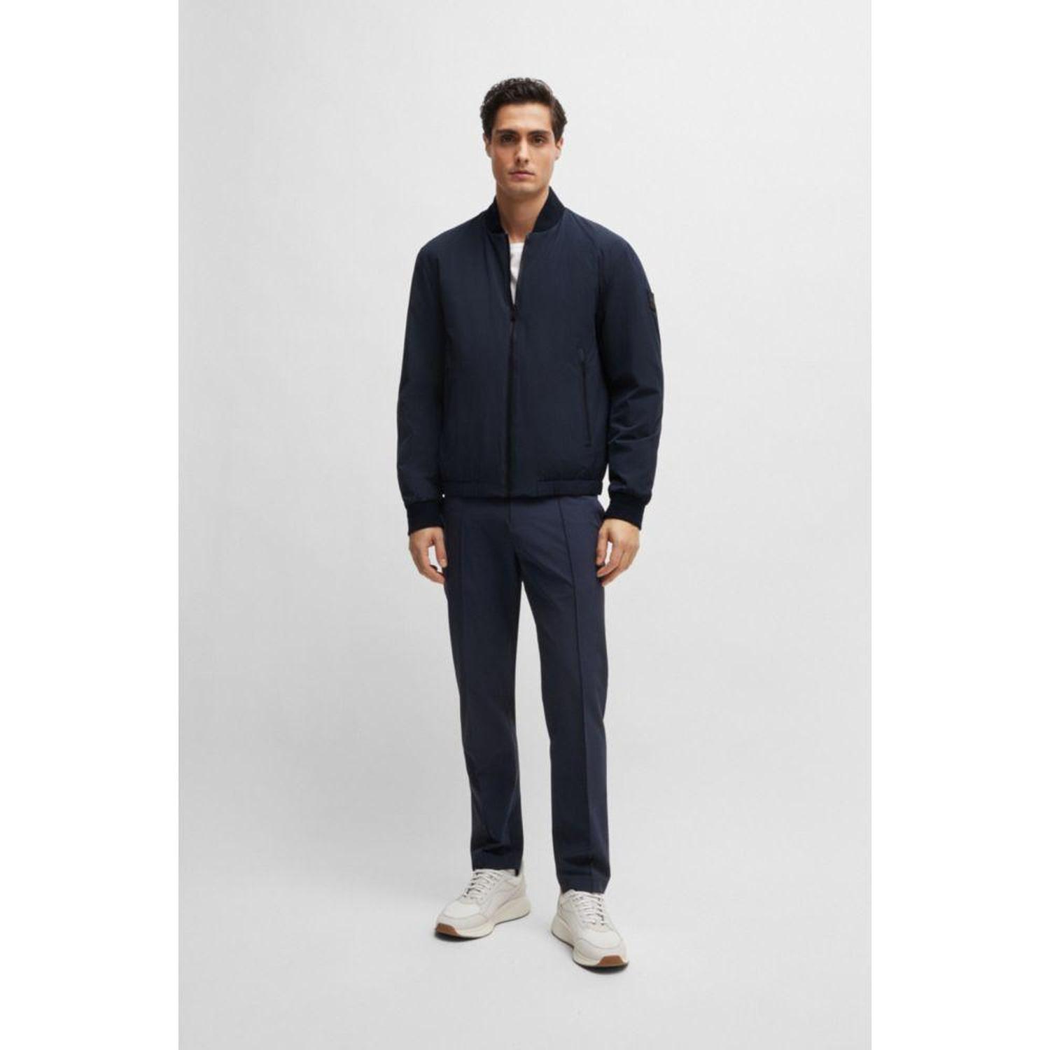 A contemporary jacket by BOSS Menswear, cut to a straight fit in bi-stretch material with stretch-cotton ribbing.