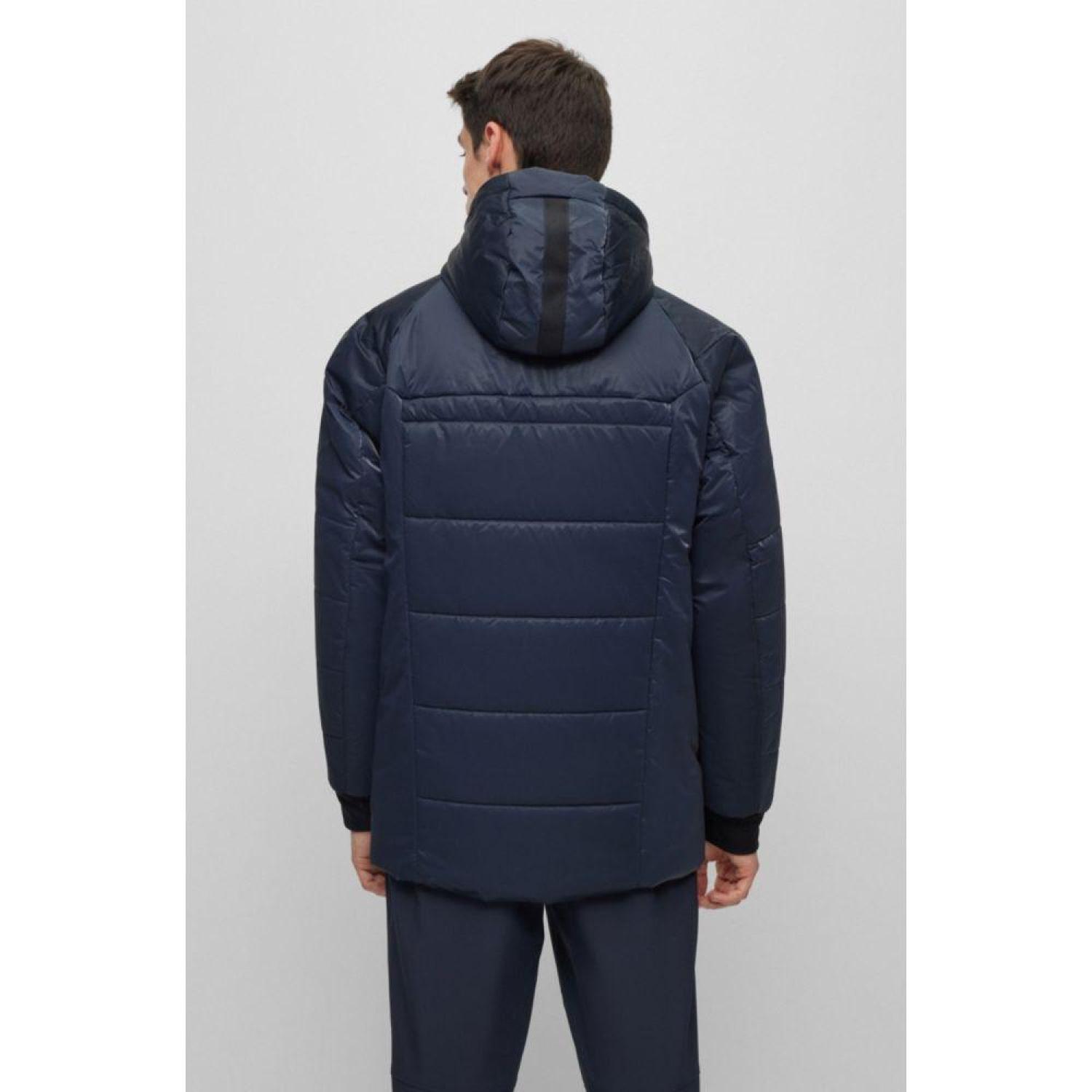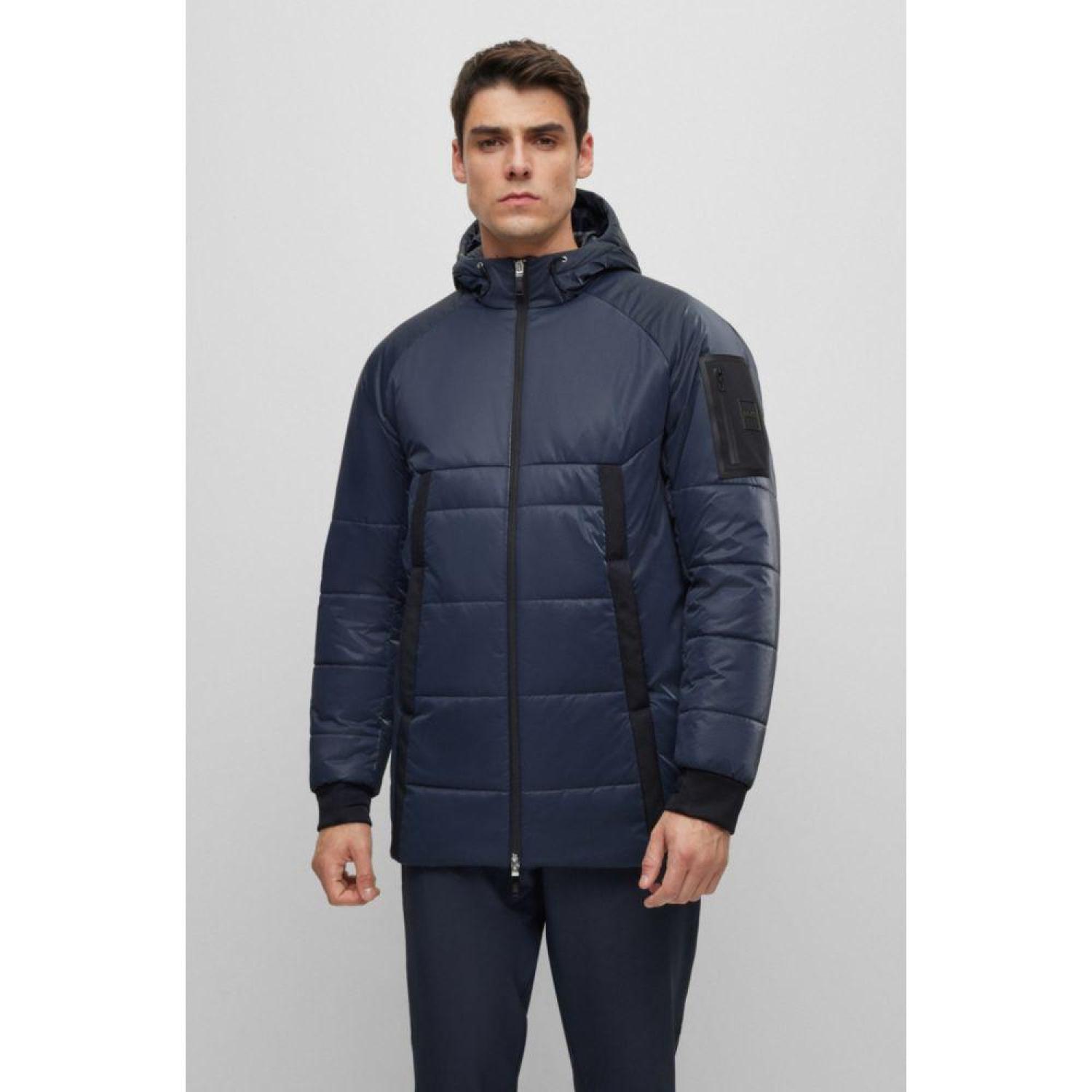 A regular-fit hooded jacket in padded velour with ribbon trims and a branded sleeve pocket by BOSS Menswear.