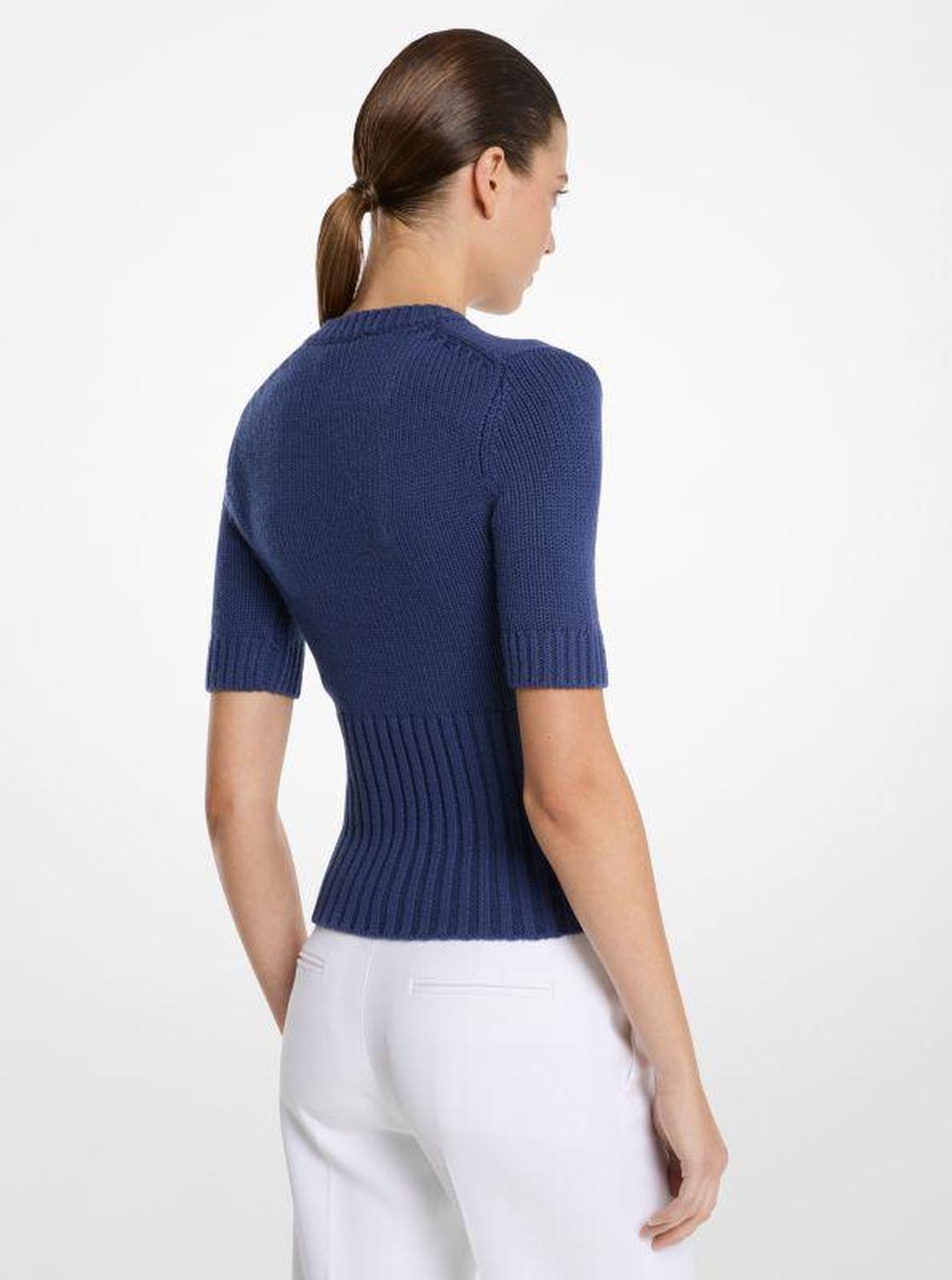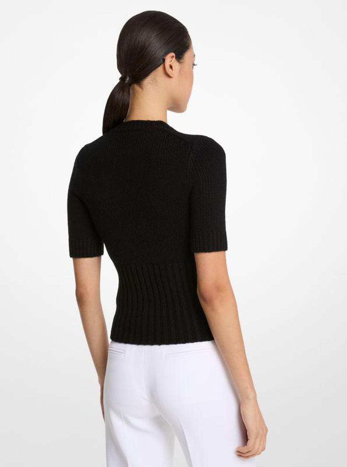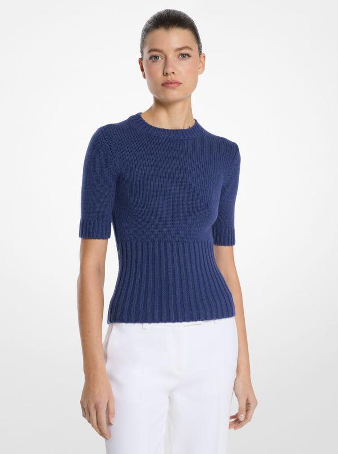 Ribbed Stretch Cashmere Short-Sleeve Sweater